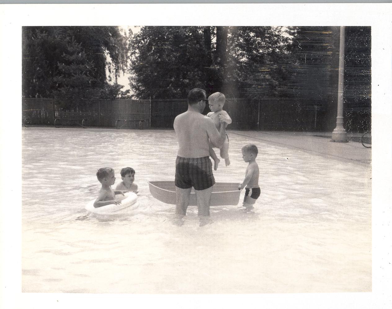 PicId: scan4080 Group: Album, Hersheys 1970-1972 Where: Grosse Pointe City Park When: 06-15-1970 Subject(s): Michael David Hershey; Joseph Raymond Hershey; Edgar Allen Clingerman, Sr.; John Melson; Edgar Allen Clingerman, Jr Comments: In small pool at Park |