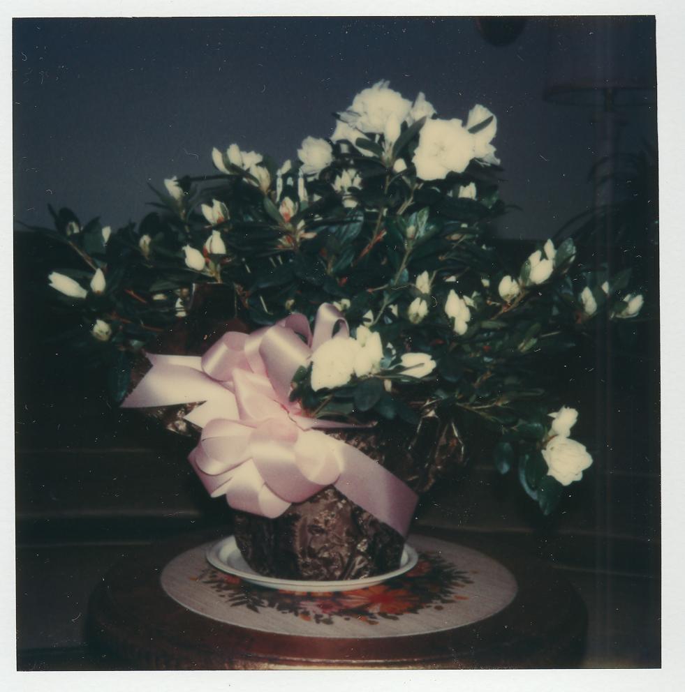 PicId: scan5452b Group: Album, Hersheys 1977-1979 Where: 9 Alger Place, Grosse Pointe, MI When: 02-16-1979 Subject(s): Unspecified Comments: White azelae plant Dad sent Mom on her birthday--he is definitely a romantic |