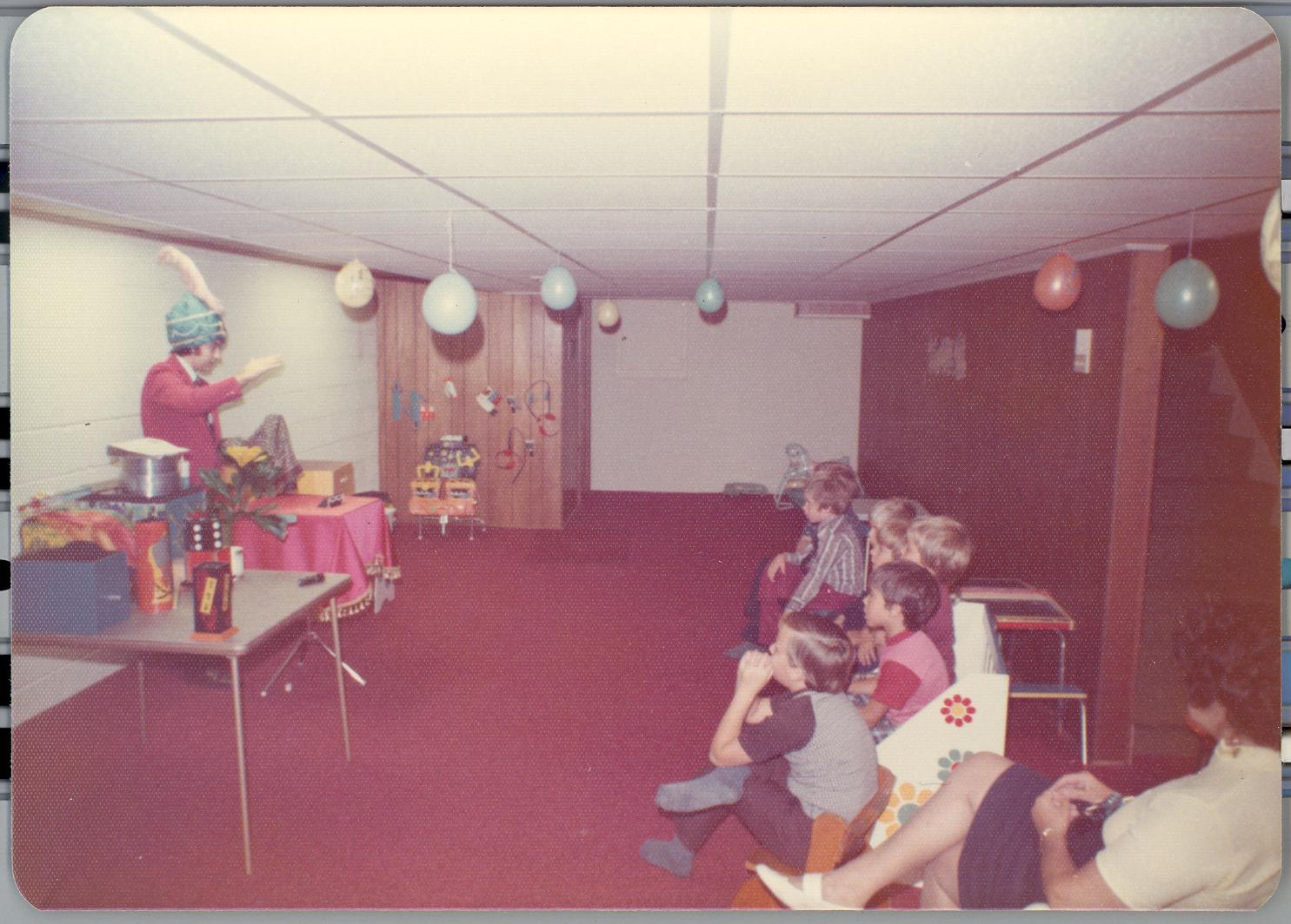 PicId: scan4135 Group: Birthday, Joseph Where: 9 Alger Place, Grosse Pointe, MI When: 09-25-1973 Subject(s): Unspecified Comments: Magician show was in basement |