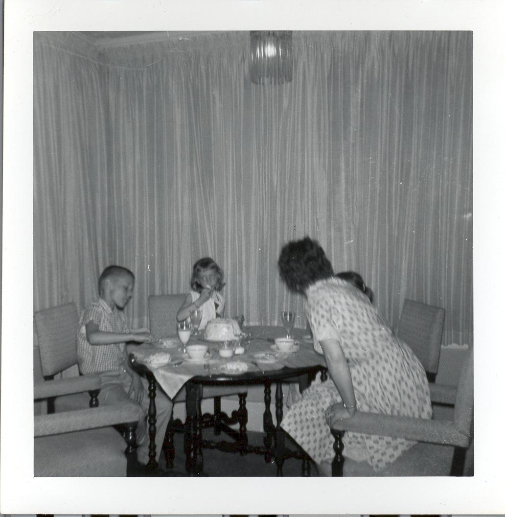 PicId: scan1127 Group: Birthday, Pat Where: 798 Berkshire, Grosse Pointe, MI When: 06-01-1961 Subject(s): Ernest Allen Hershey, III; Stephen Douglas Hershey; Patricia Kay Hershey Comments: Had gone to Howard Johnson's for Pat's Birthday and came back home for cake and presents Margaret France celebrated with her in picture |