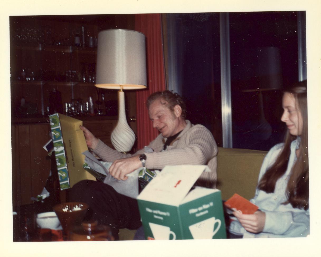 PicId: scan4141 Group: Christmas Where: 9 Alger Place, Grosse Pointe, MI When: 12-25-1973 Subject(s): Ernest Allen Hershey, Jr.; Patricia Kay Hershey Comments: Dad opening his present |