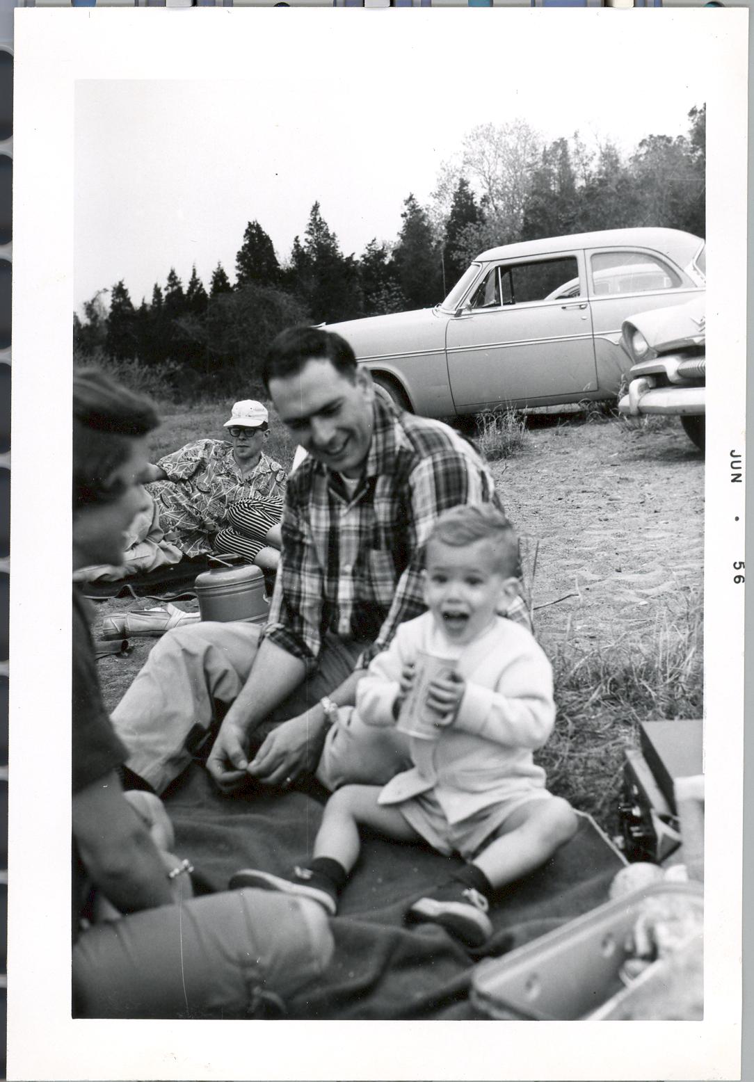 PicId: scan0144 Group: Misc Where: Unspecified When: 07-01-1956 Subject(s): Unspecified Comments: Intern picnic at Pointe Pelee in Canada;Dr. Ed Attarian and David (Pat's age) |