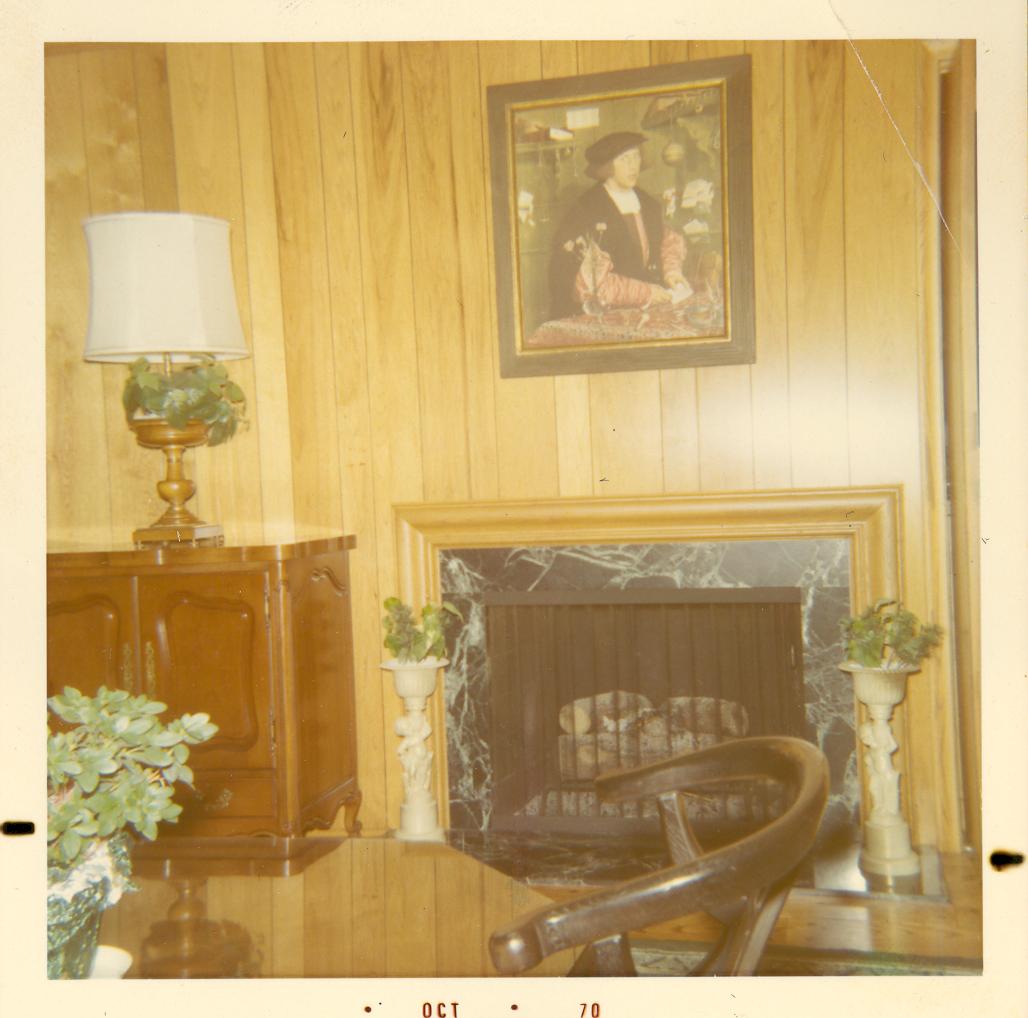 PicId: scan3118 Group: Misc Where: Unspecified When: 07-01-1970 Subject(s): Unspecified Comments: In Family room--notice painting from Detroit Art Institute on wall--Had to return it for Dad thought the man looked guilty or his pants were full! |