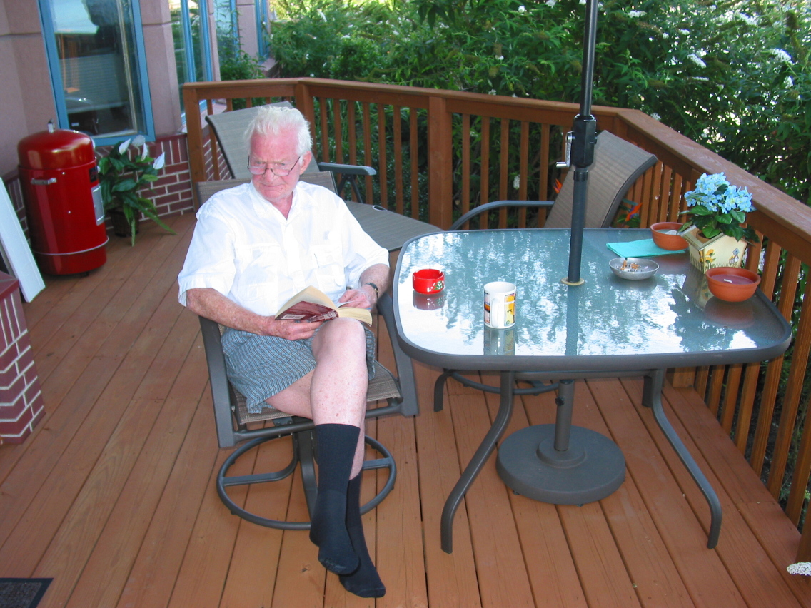 PicId: IMG_1209 Group: Trip, NJ Sep, 2003 Where: Edgewater, NJ When: 09-07-2003 Subject(s): Ernest Allen Hershey, Jr. Comments: Dad enjoying himself on Al's deck even though it does not look like it |