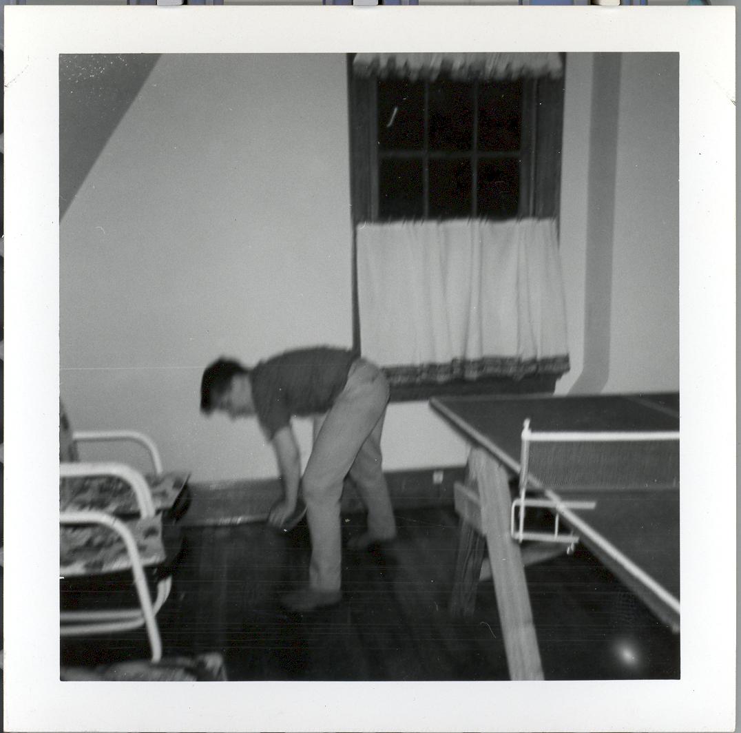 PicId: scan1065 Group: Unspecified Where: 798 Berkshire, Grosse Pointe, MI When: 07-01-1961 Subject(s): Unspecified Comments: Kim Hadley agin playing ping pong on 3rd floor |