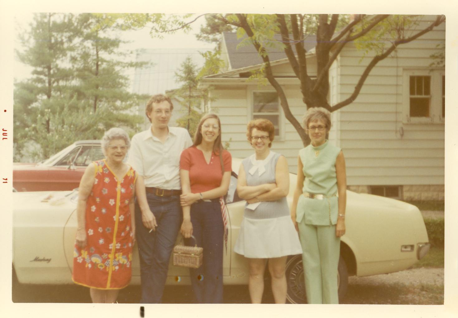 PicId: scan5036 Group: Trip, Florida Jan 1974 Where: Florida When: 01-15-1974 Subject(s): Betty Clingerman. Guia; Edgar Allen Clingerman, Jr; Michael David Hershey; Pauline Clingerman(Grandma Polly; Joseph Raymond Hershey Comments: Ready to go into Disney World |