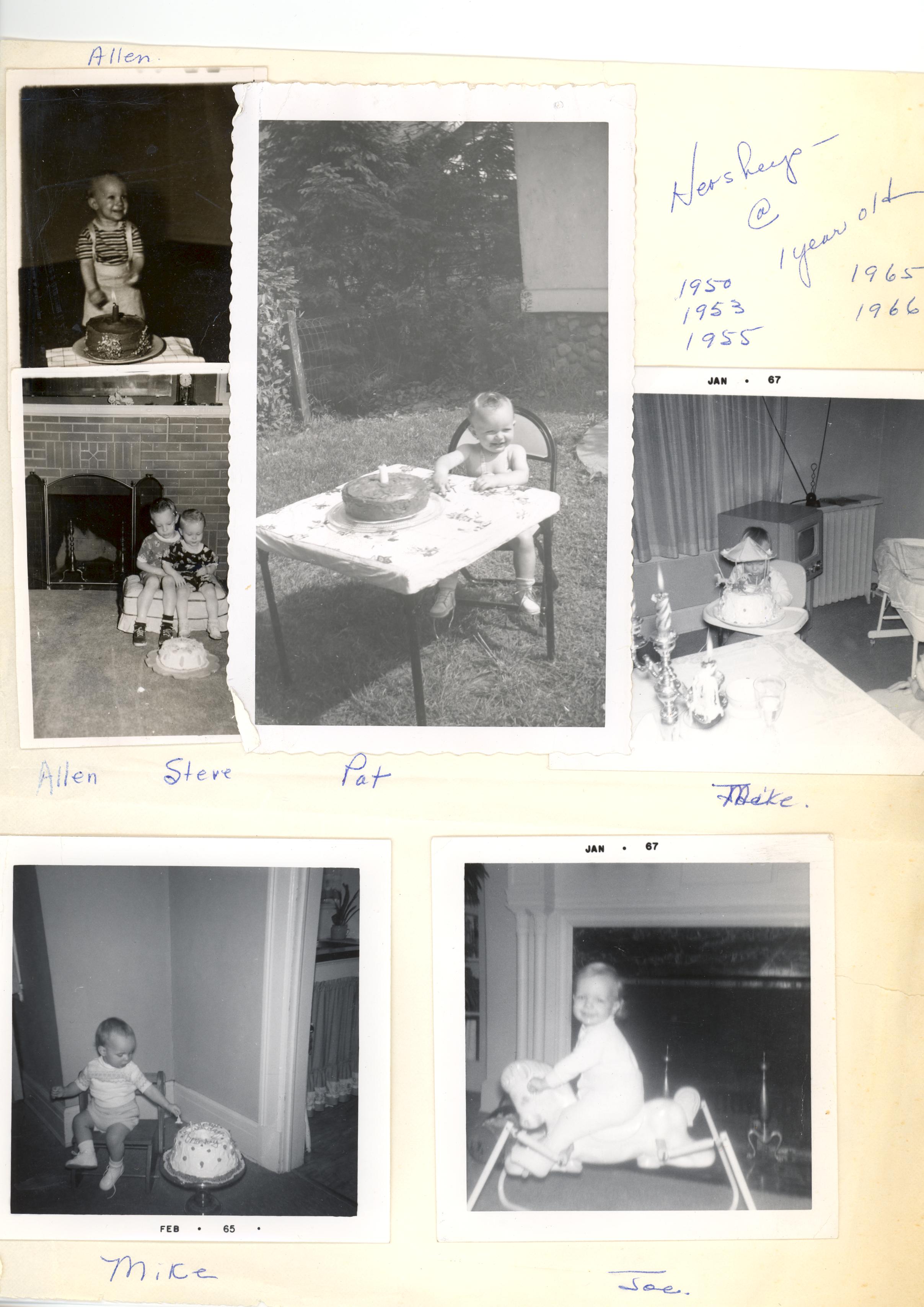 PicId: scan0000 Group: Misc Where: Unspecified When: Unspecified Subject(s): Ernest Allen Hershey, III; Stephen Douglas Hershey; Patricia Kay Hershey; Michael David Hershey; Joseph Raymond Hershey Comments: Pictures af all kids at one year of age Allen-1950,Steve-1953,Pat-1955,Mike-1965, Joe-1966 |