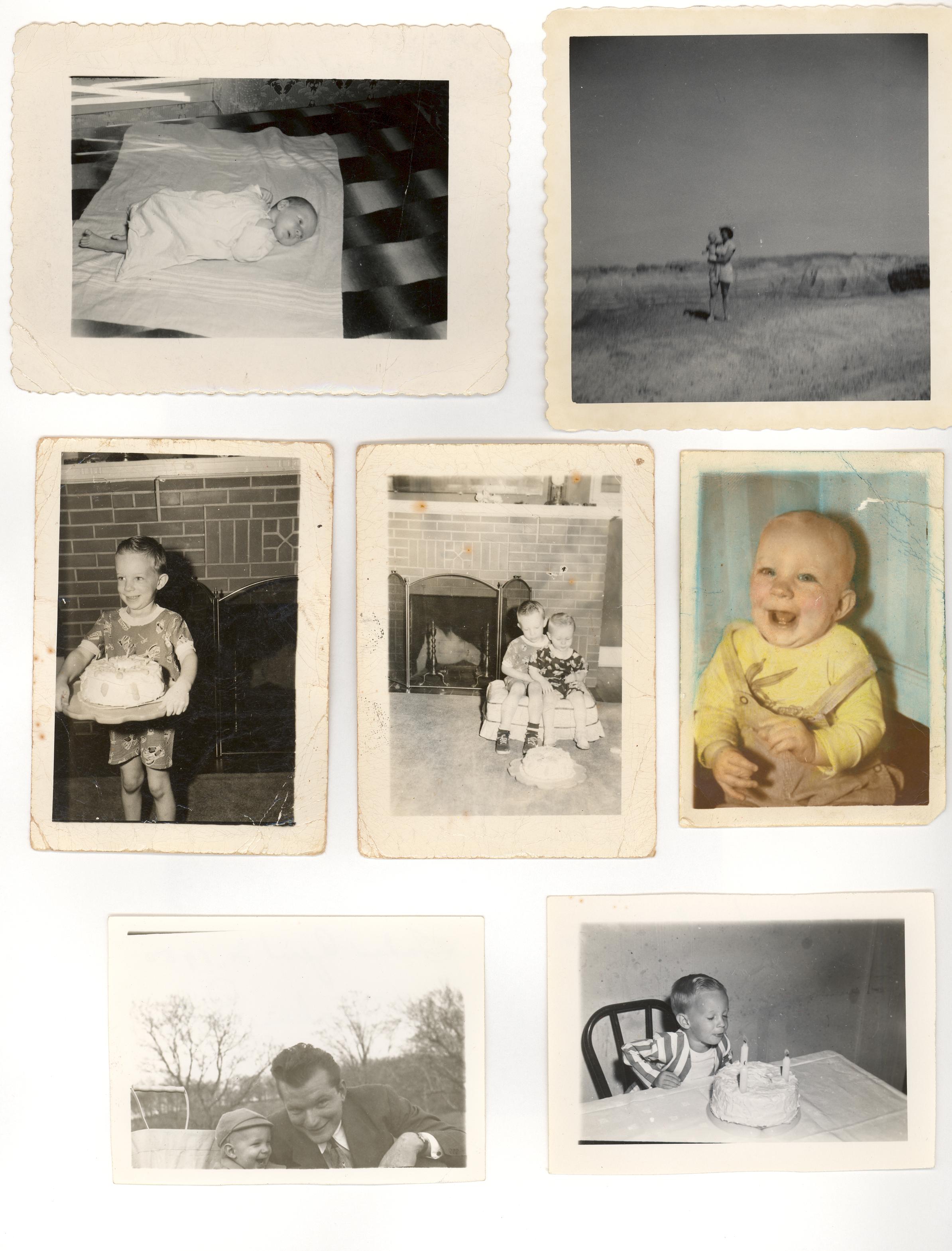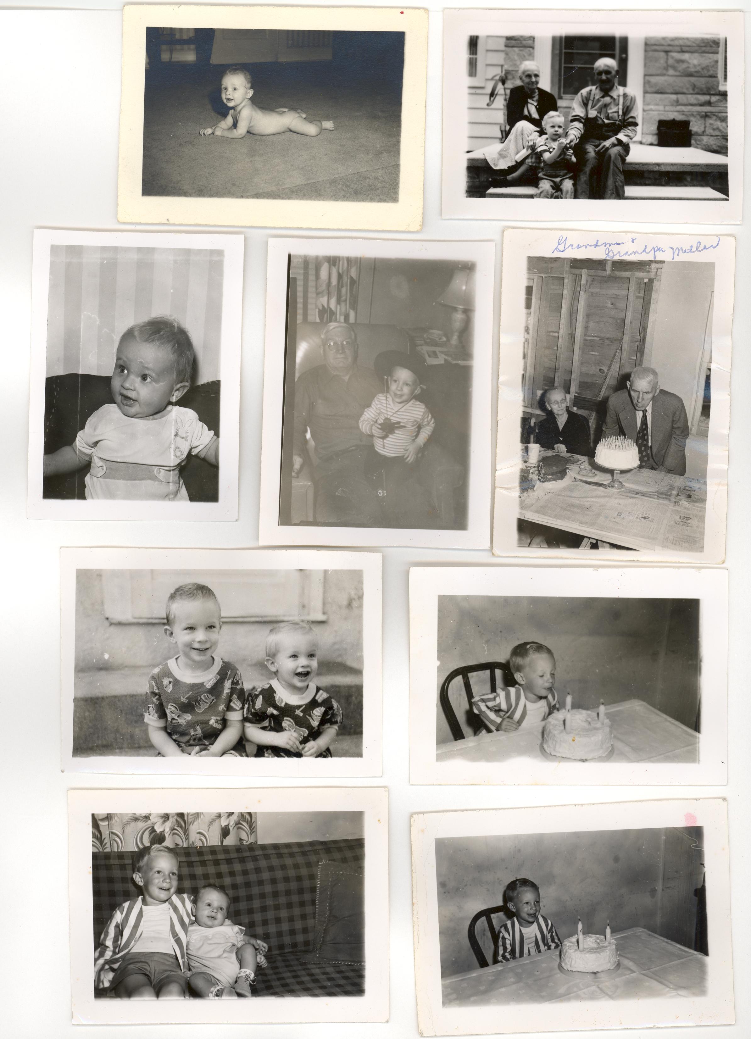 PicId: scan0074 Group: Misc Where: All over (see below) When: Unspecified Subject(s): Ernest Allen Hershey, III; Stephen Douglas Hershey Comments: Frist Row: 1952 Steve at 6 mos., 1212 W. 36th St., Indianapolis, IN 1951 Al w/Grandma & Grandpa Miller at Aunt Florence’s at Lake Webster, IN Second Row: 1952 Steve at 7 mos., 1212 W. 36th St., Indianapolis, IN 1951 Al at 2-1/2 yrs old w/Grandpa Hershey at Busco 1950 Grandma & Grandpa Miller; Grandpa’s birthday at Uncle Otto’s Third Row 1953 Al & Steve on back steps at 1212 W. 36th St., Indianapolis, IN 1952 Al’s 3rd birthday; Hoosier Courts in Bloomington, IN Fourth Row 1952 October; Al & Steve at Hoosier Courts in Bloomington, IN 1952 Al’s 3rd birthday; Hoosier Courts in Bloomington, IN |