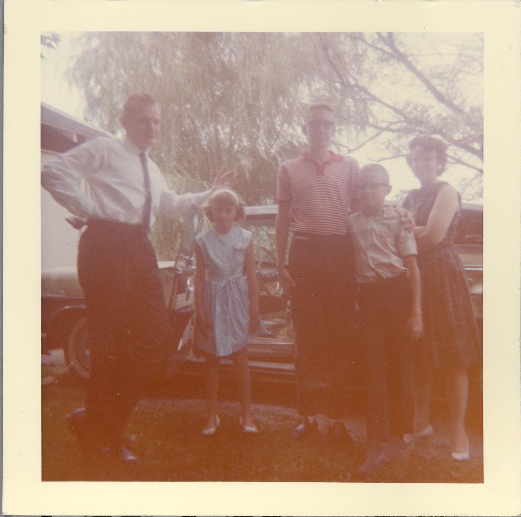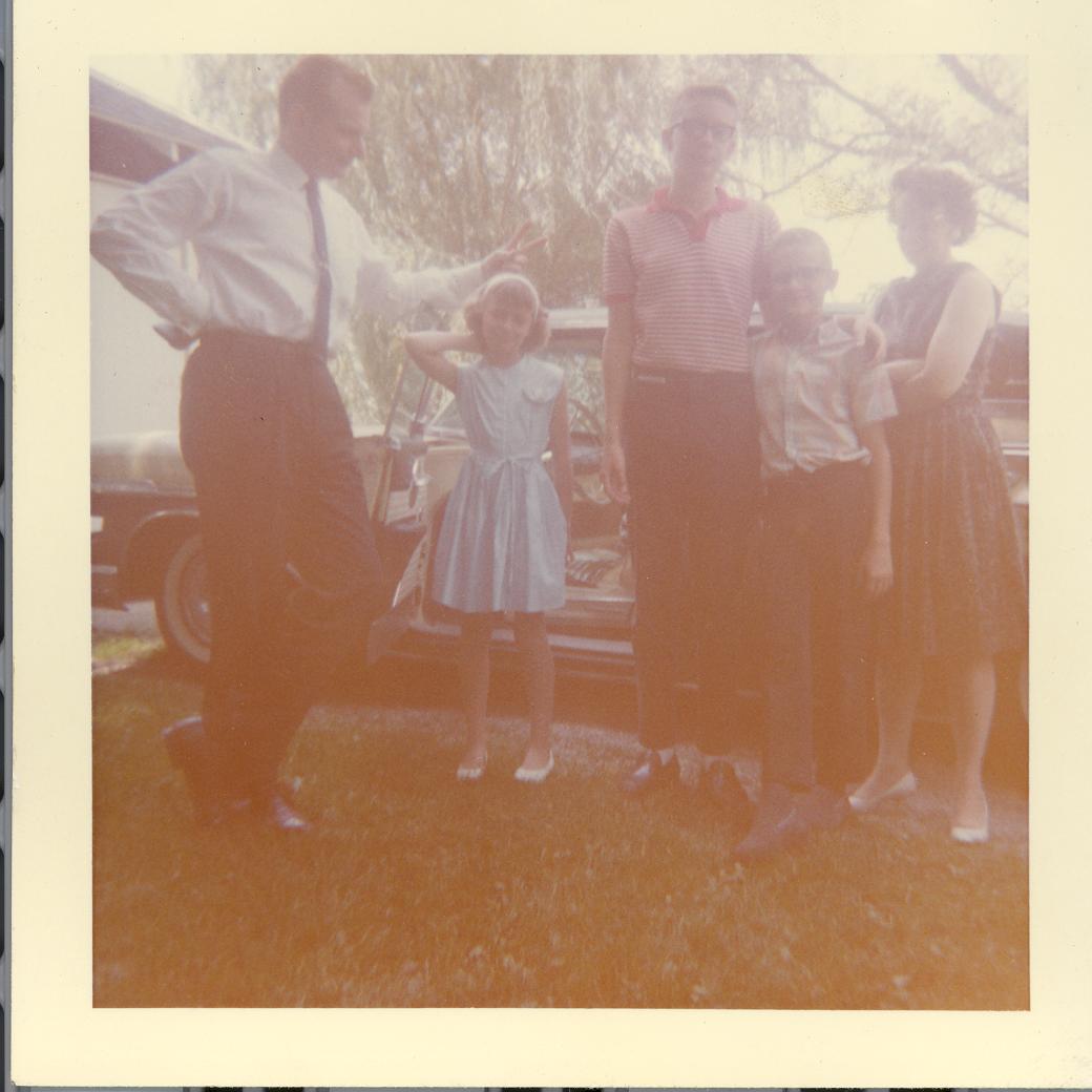 PicId: scan1222 Group: Misc Where: Grandma Polly's House, Churubusco, IN When: 07-01-1963 Subject(s): Ernest Allen Hershey, Jr.; Kathleen Kay Hershey; Ernest Allen Hershey, III; Stephen Douglas Hershey; Patricia Kay Hershey Comments: Whole family read to go back to GP |