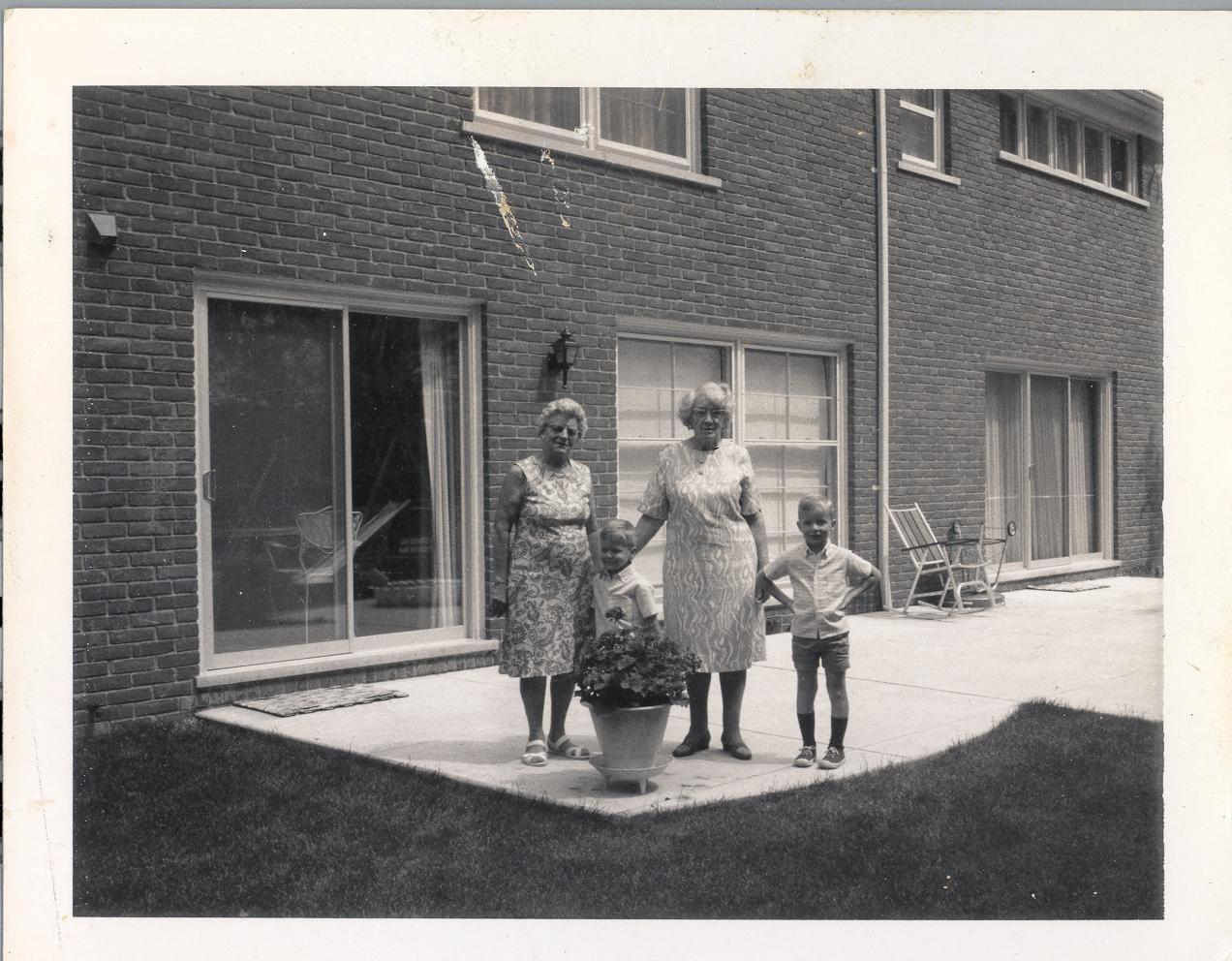 PicId: scan3003 Group: Misc Where: 9 Alger Place, Grosse Pointe, MI When: 07-01-1969 Subject(s): Pauline Clingerman(Grandma Polly; Grand Ma Hershey; Michael David Hershey; Joseph Raymond Hershey Comments: In back on the patio |