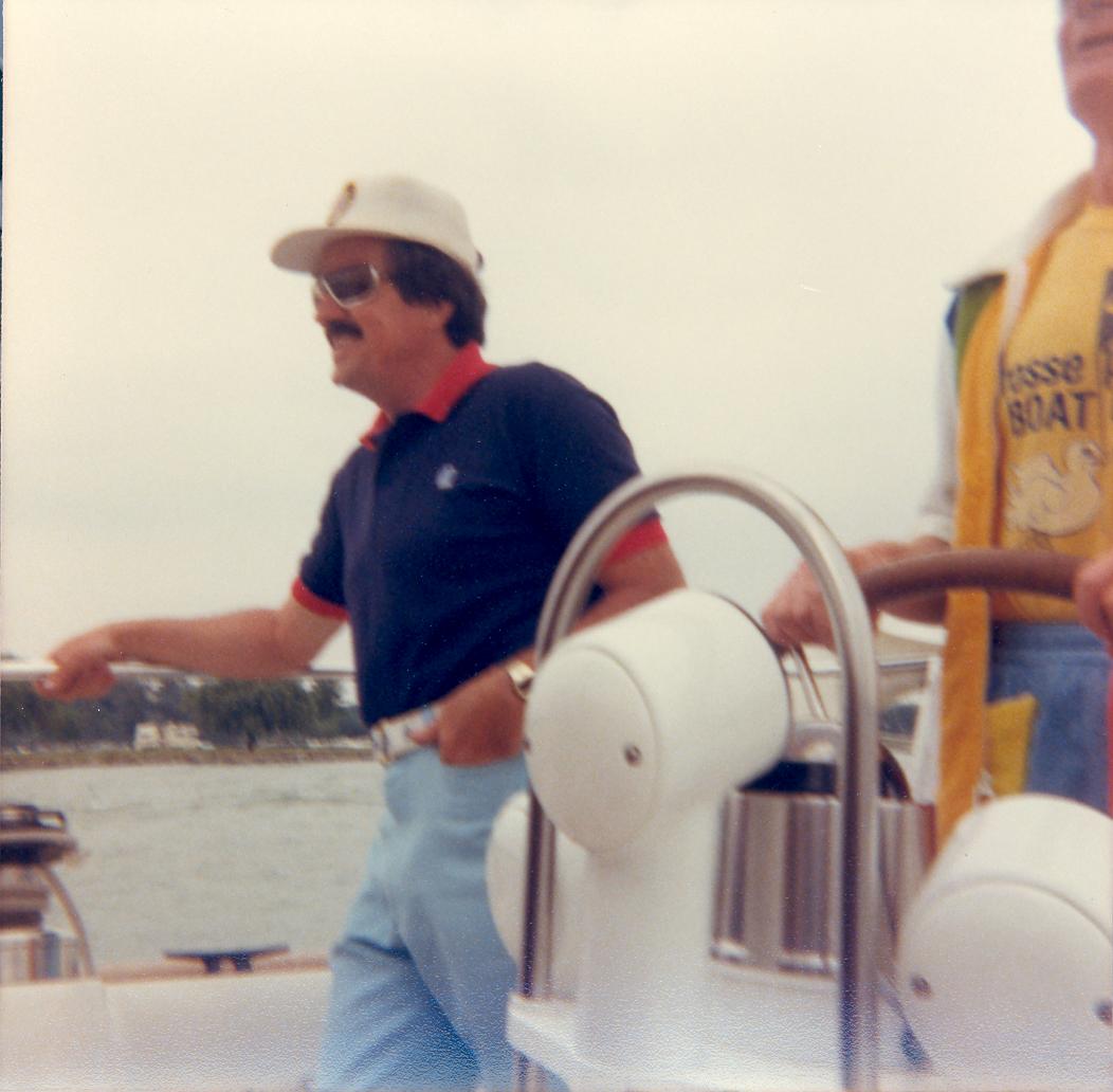 PicId: scan5358 Group: Album, Hersheys 1977-1979 Where: Michigan When: 07-04-1978 Subject(s): Howard Draper Comments: Bud Draper at helm of his boat "Summer Sail III" |