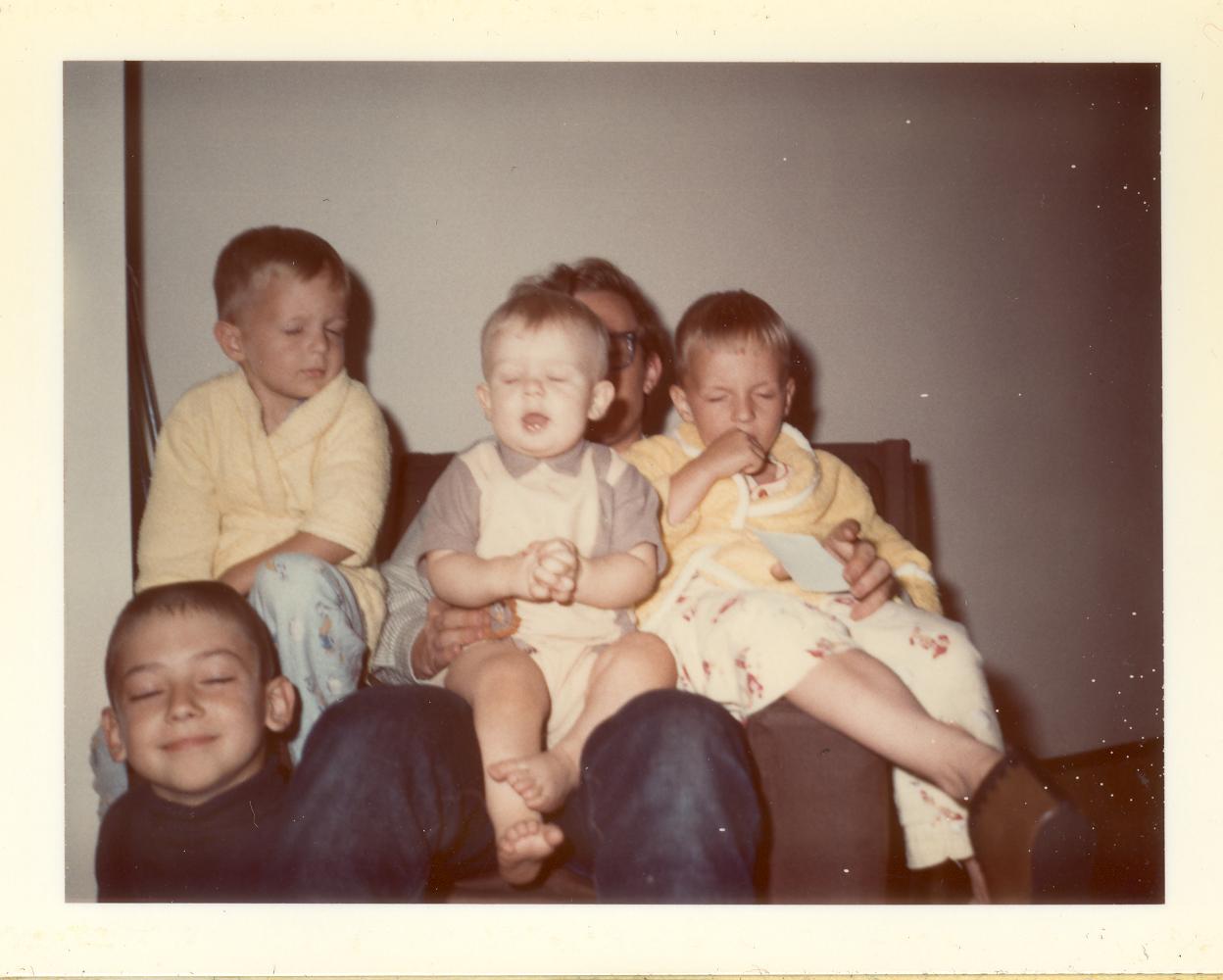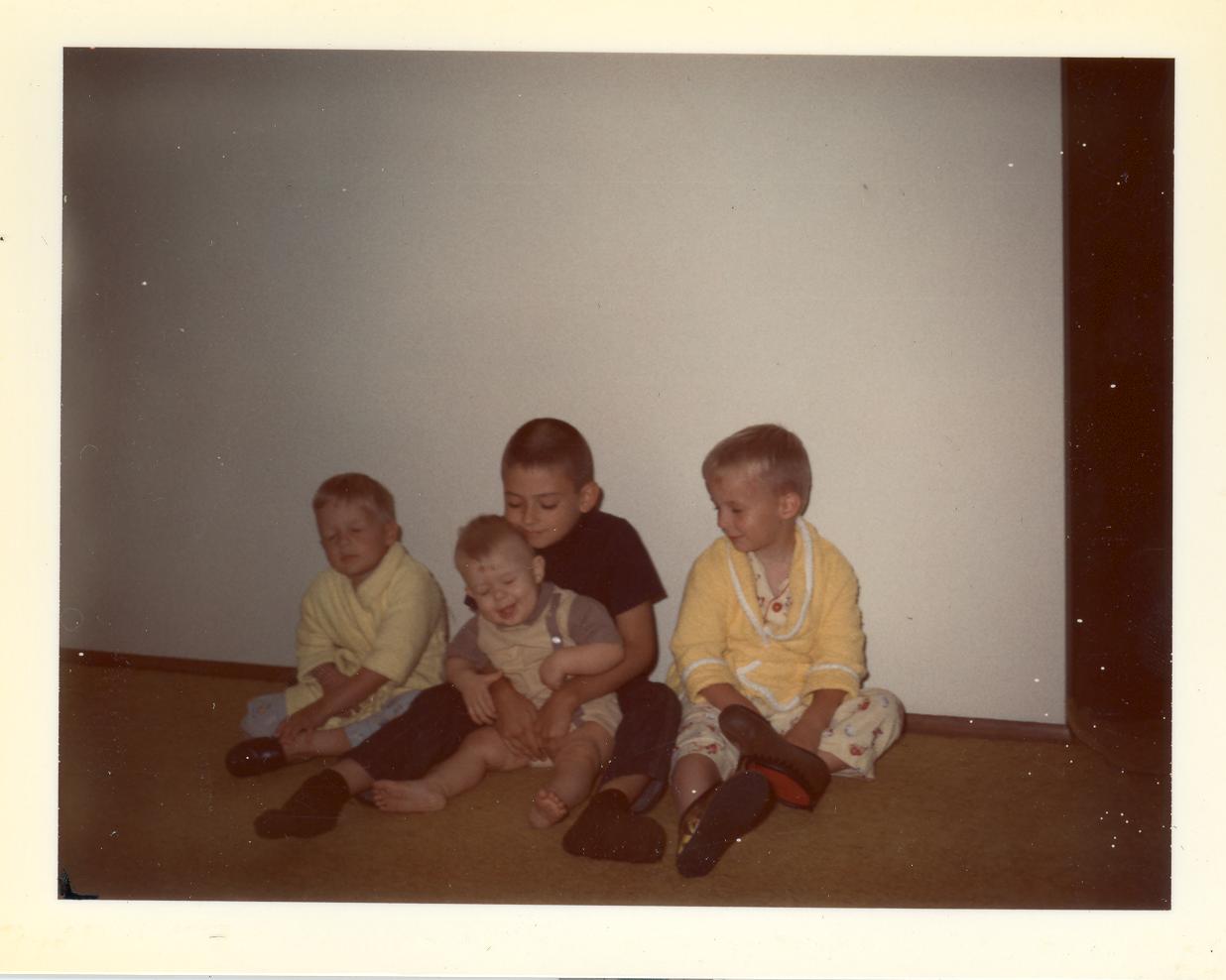 PicId: scan3016 Group: Misc Where: Indiana When: 07-01-1969 Subject(s): Ernest Allen Hershey, III; Michael David Hershey; Joseph Raymond Hershey; John Melson; Edgar Allen Clingerman, Jr Comments: All the boys piling up on Allen Hershey |