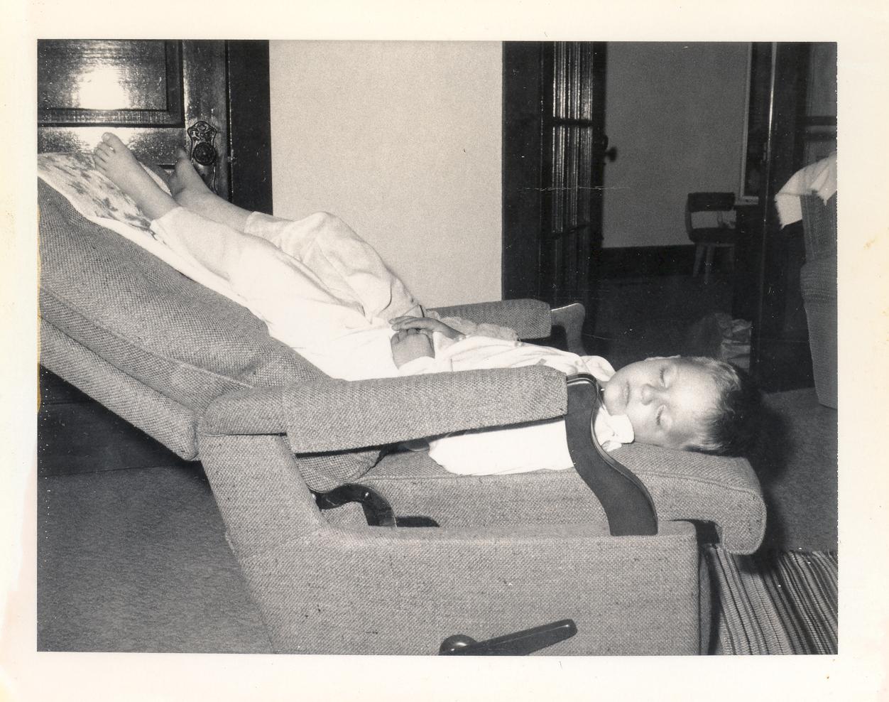 PicId: scan3078 Group: Misc Where: Grandma Polly's House, Churubusco, IN When: 07-01-1970 Subject(s): Joseph Raymond Hershey Comments: Joe asleep in Polly's chair. He always wanted to sit in this chair when he went to Polly's. |