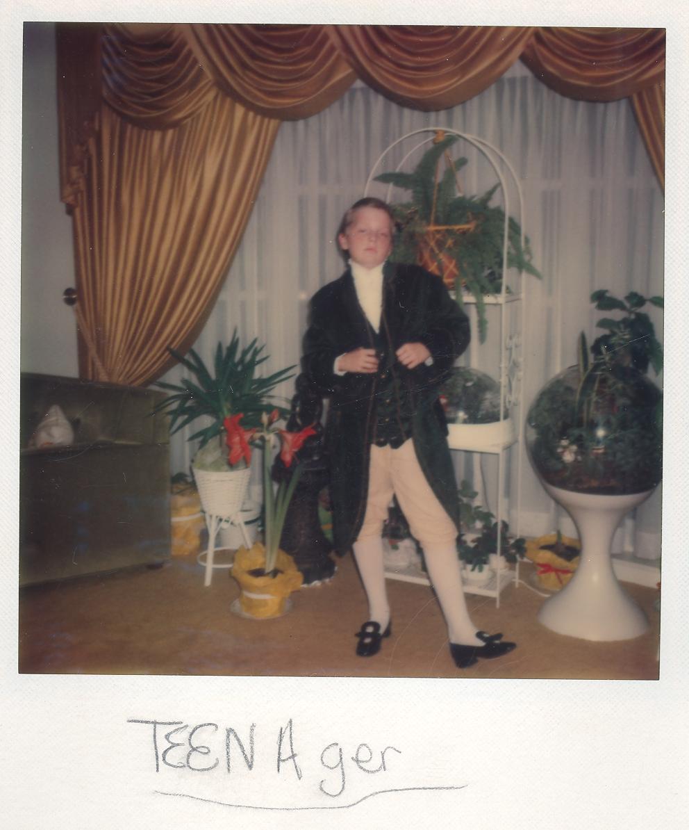 PicId: scan5160b Group: Album, Hersheys 1975-1977 Where: 9 Alger Place, Grosse Pointe, MI When: 10-15-1976 Subject(s): Joseph Raymond Hershey Comments: Joe dressed up as a teenager in a play at school |