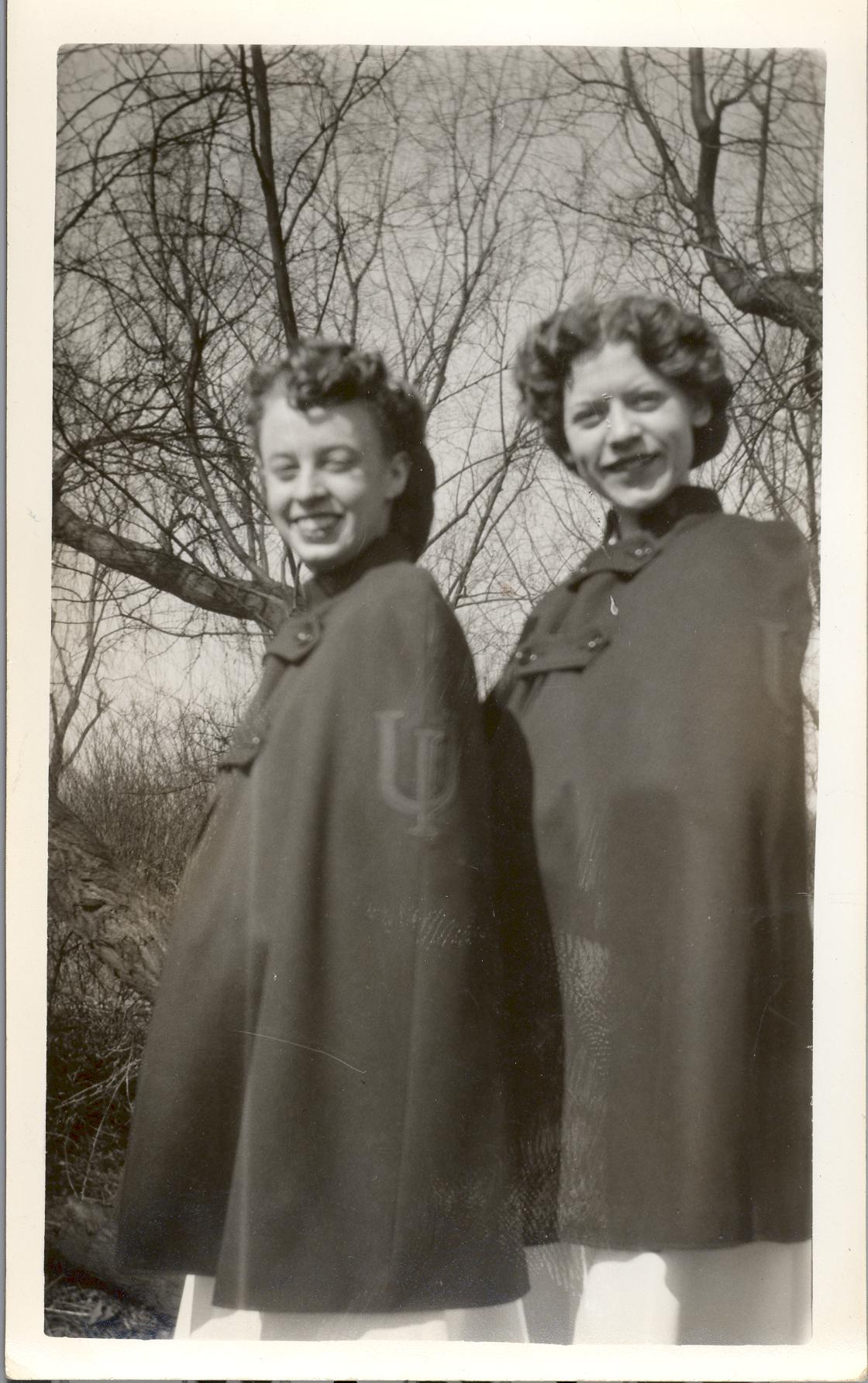 PicId: scan0043d Group: Misc Where: Bloomington, IN When: 07-01-1944 Subject(s): Roomate Miriam Beldon; Kathleen Kay Hershey Comments: Mom’s first year in college (IU) at Morrison Hall w/roomate Miriam |