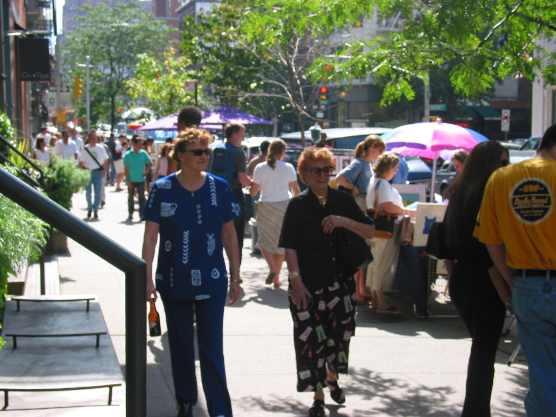 PicId: IMG_1214 Group: Trip, NJ Sep, 2003 Where: New York, NY When: 09-07-2003 Subject(s): Kris Barski; Kathleen Kay Hershey Comments: walking along street and looking at all kinds of things for sale in Soho |