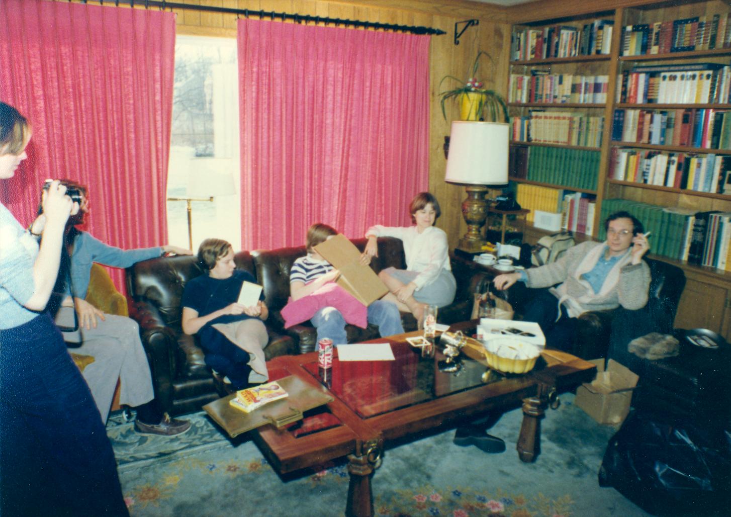 PicId: scan5305 Group: Christmas Where: 9 Alger Place, Grosse Pointe, MI When: 12-25-1977 Subject(s): Ernest Allen Hershey, III; Lucy Hershey; Michael David Hershey; Patricia Kay Hershey; Joseph Raymond Hershey Comments: Pat trying out Mom's new camera |