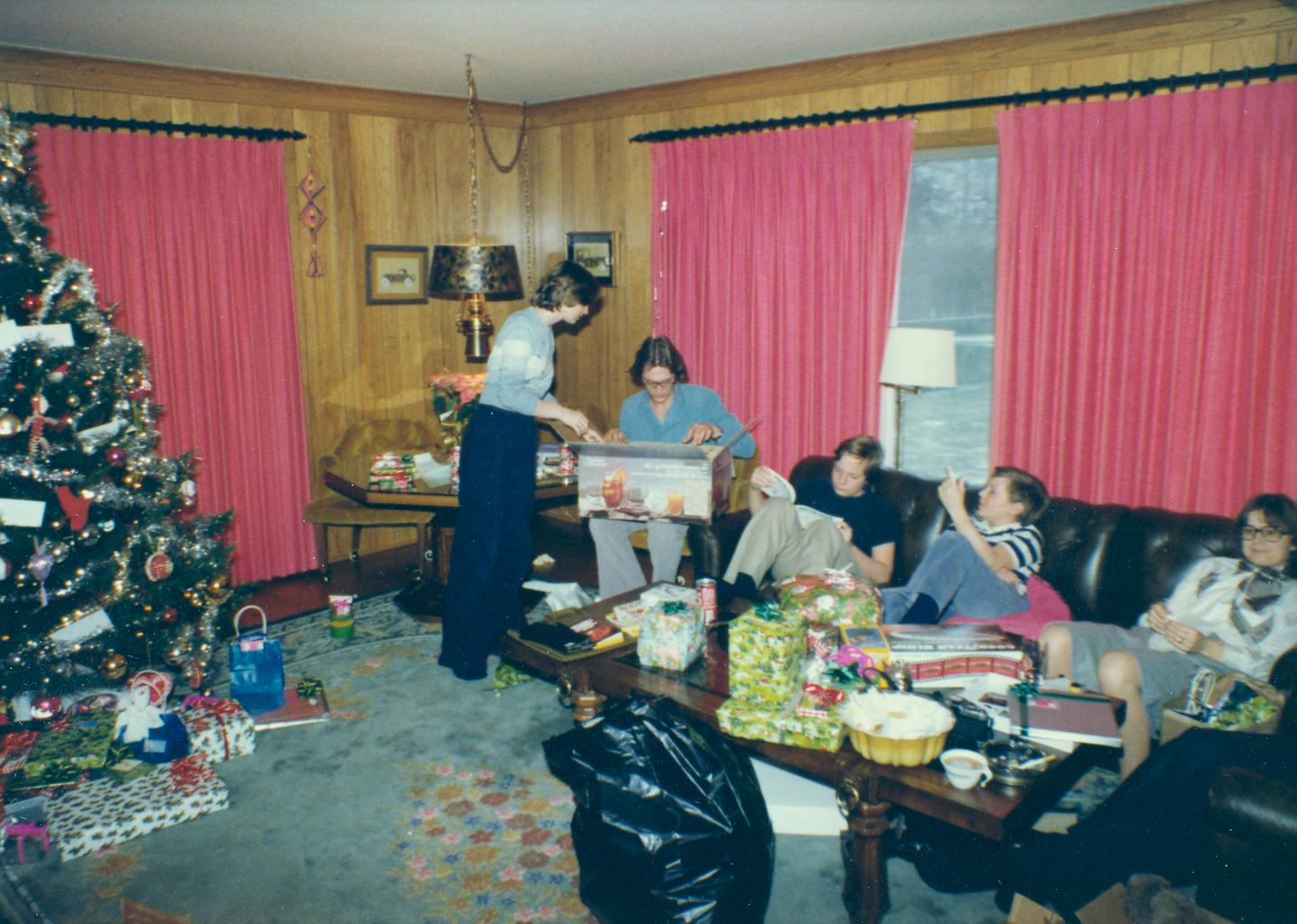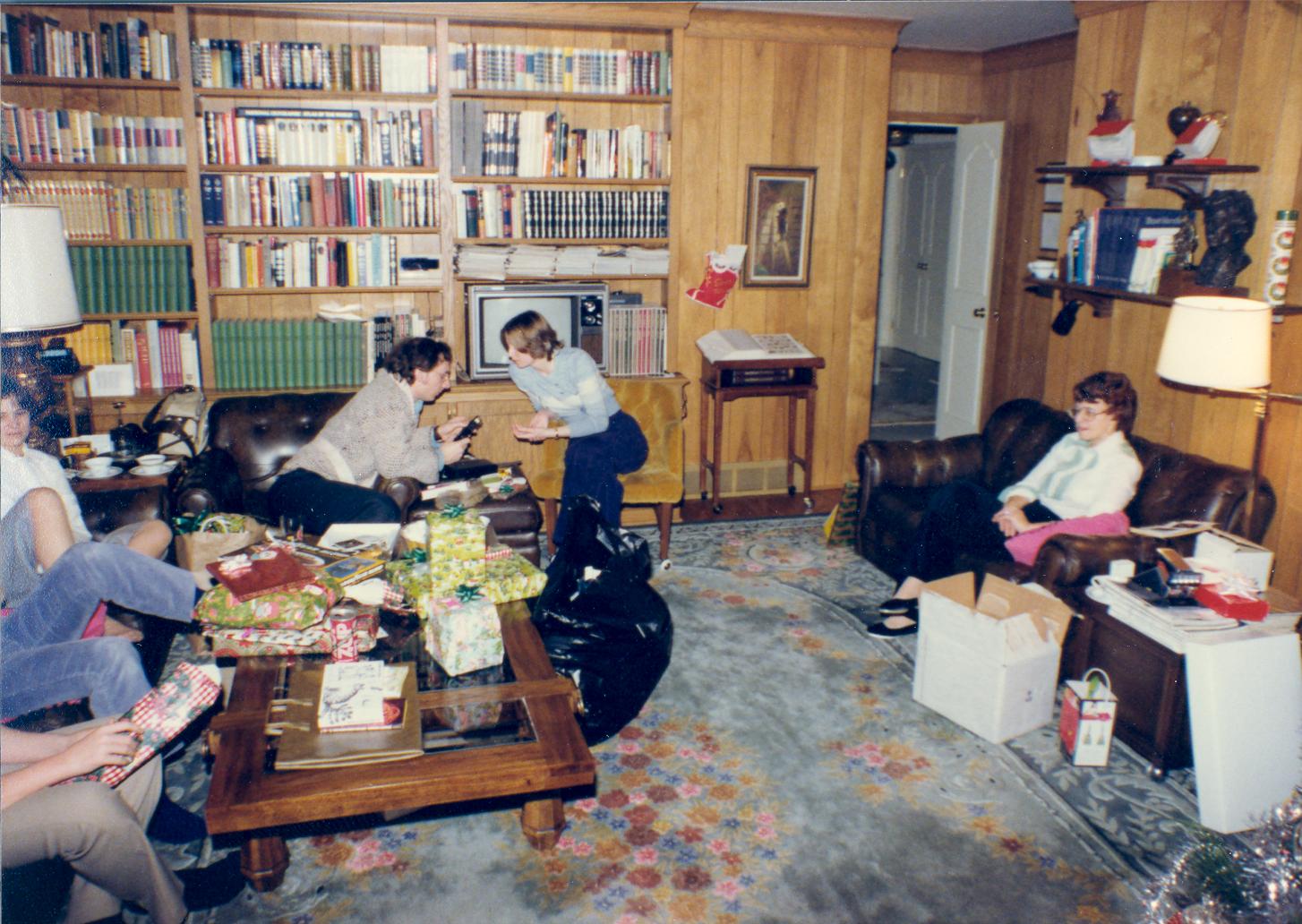 PicId: scan5309 Group: Christmas Where: 9 Alger Place, Grosse Pointe, MI When: 12-25-1977 Subject(s): Kathleen Kay Hershey; Ernest Allen Hershey, III; Patricia Kay Hershey; Lucy Hershey Comments: Pat and Al must be talking about something important |
