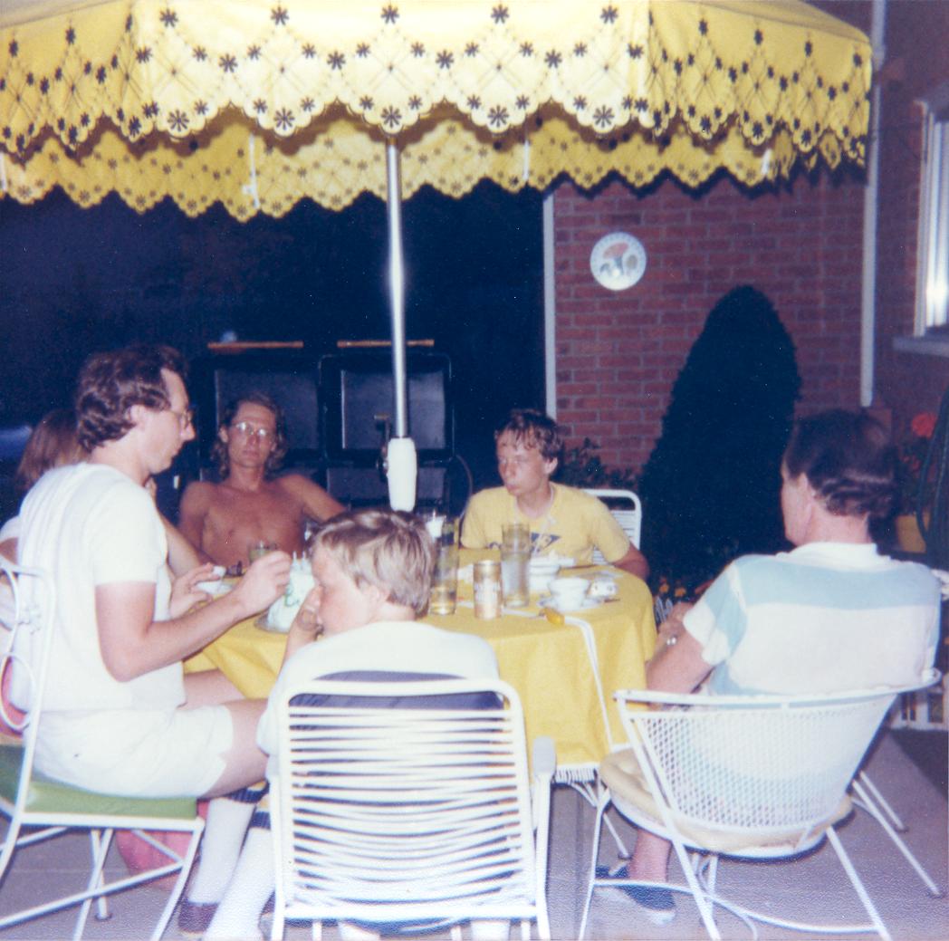 PicId: scan5362 Group: Birthday, Allen Where: 9 Alger Place, Grosse Pointe, MI When: 07-05-1978 Subject(s): Ernest Allen Hershey, III; Stephen Douglas Hershey; Michael David Hershey; Joseph Raymond Hershey; Ernest Allen Hershey, Jr.; Lucy Hershey Comments: more celebrating Allen's Birthday on patio |