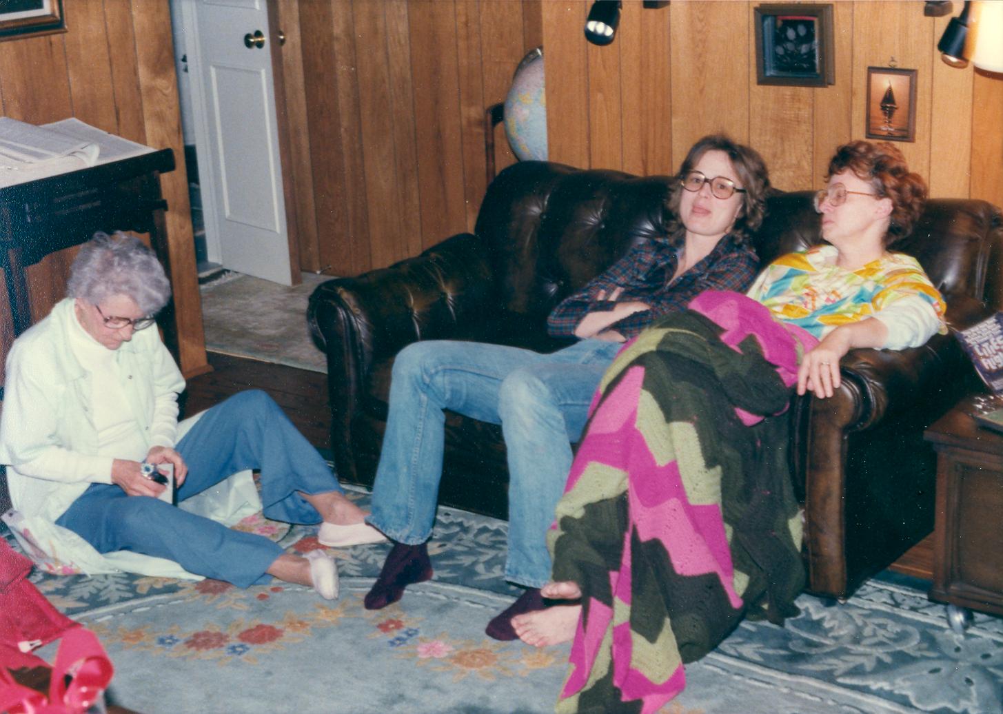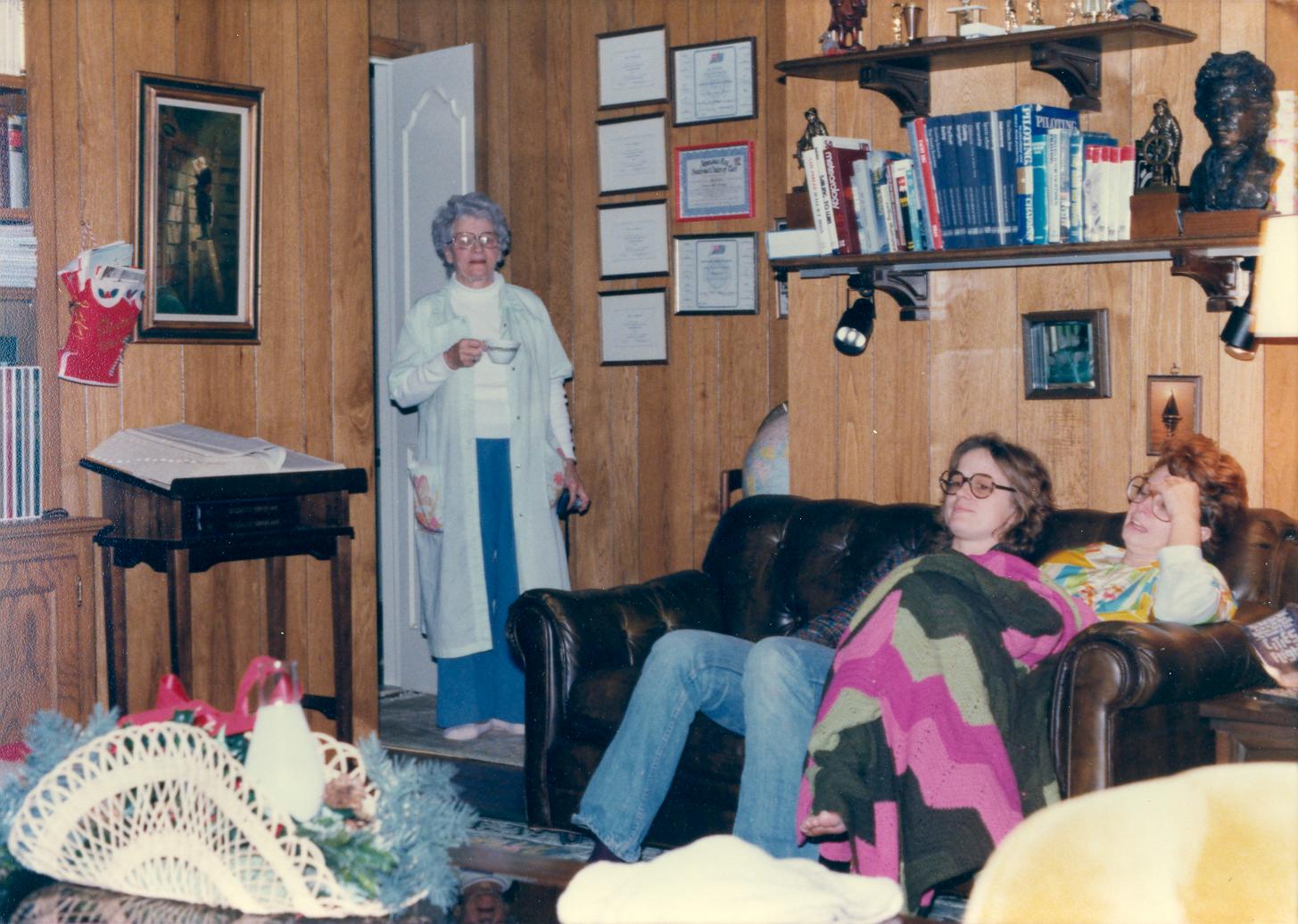 PicId: scan5421 Group: Christmas Where: 9 Alger Place, Grosse Pointe, MI When: 12-25-1978 Subject(s): Kathleen Kay Hershey; Pauline Clingerman(Grandma Polly; Lucy Hershey Comments: Polly bringing her cup of coffee in to join the rest to open presents--mom looks like she may have been up too late wrapping presents.--might even have one of her migraines. |