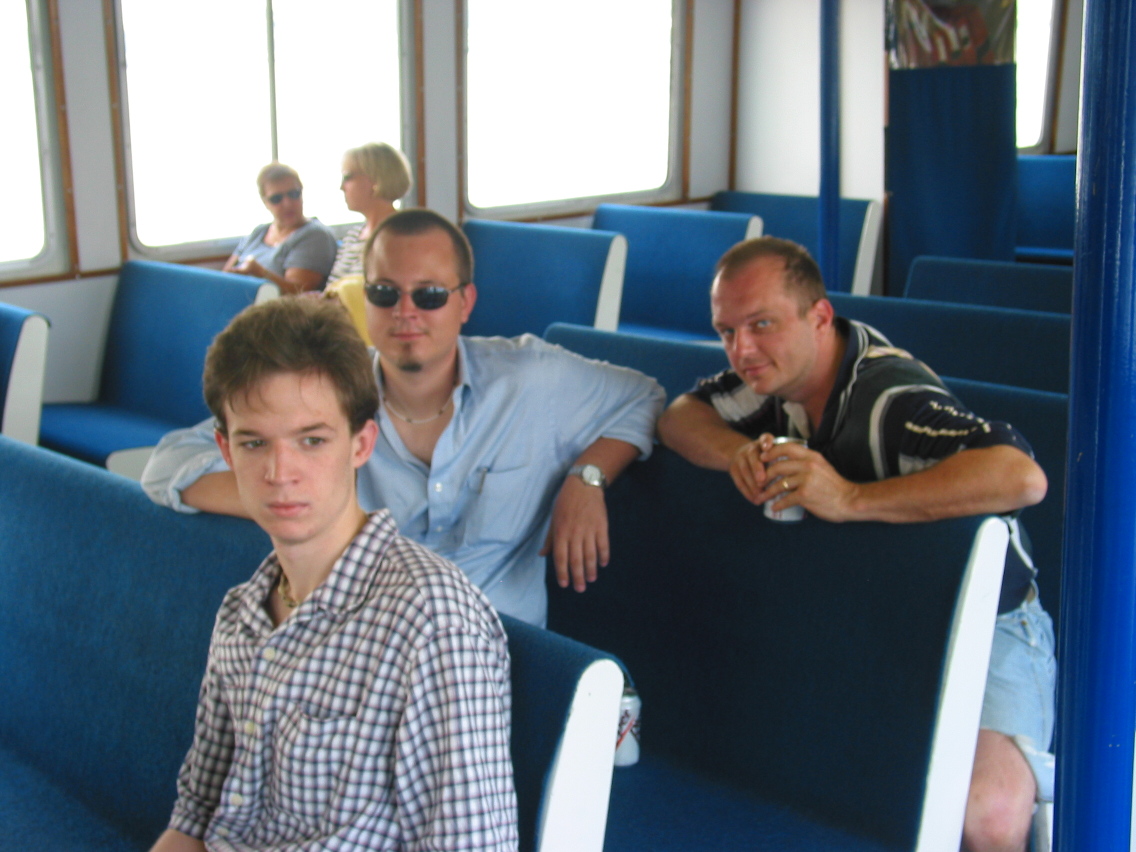 PicId: IMG_1162 Group: Trip, NYC Aug, 2003 Where: New York, NY When: 08-18-2003 Subject(s): Mark William Hershey; Ernest Allen Hershey, IV; Joseph Raymond Hershey Comments: On board Ferry to NYC. |