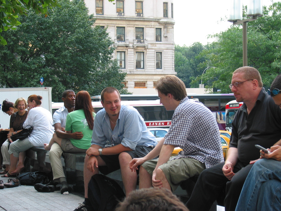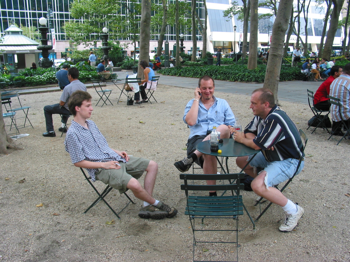 PicId: IMG_1186 Group: Trip, NYC Aug, 2003 Where: New York, NY When: 08-18-2003 Subject(s): Mark William Hershey; Ernest Allen Hershey, IV; Joseph Raymond Hershey Comments: Relaxing in Bryant Park. |