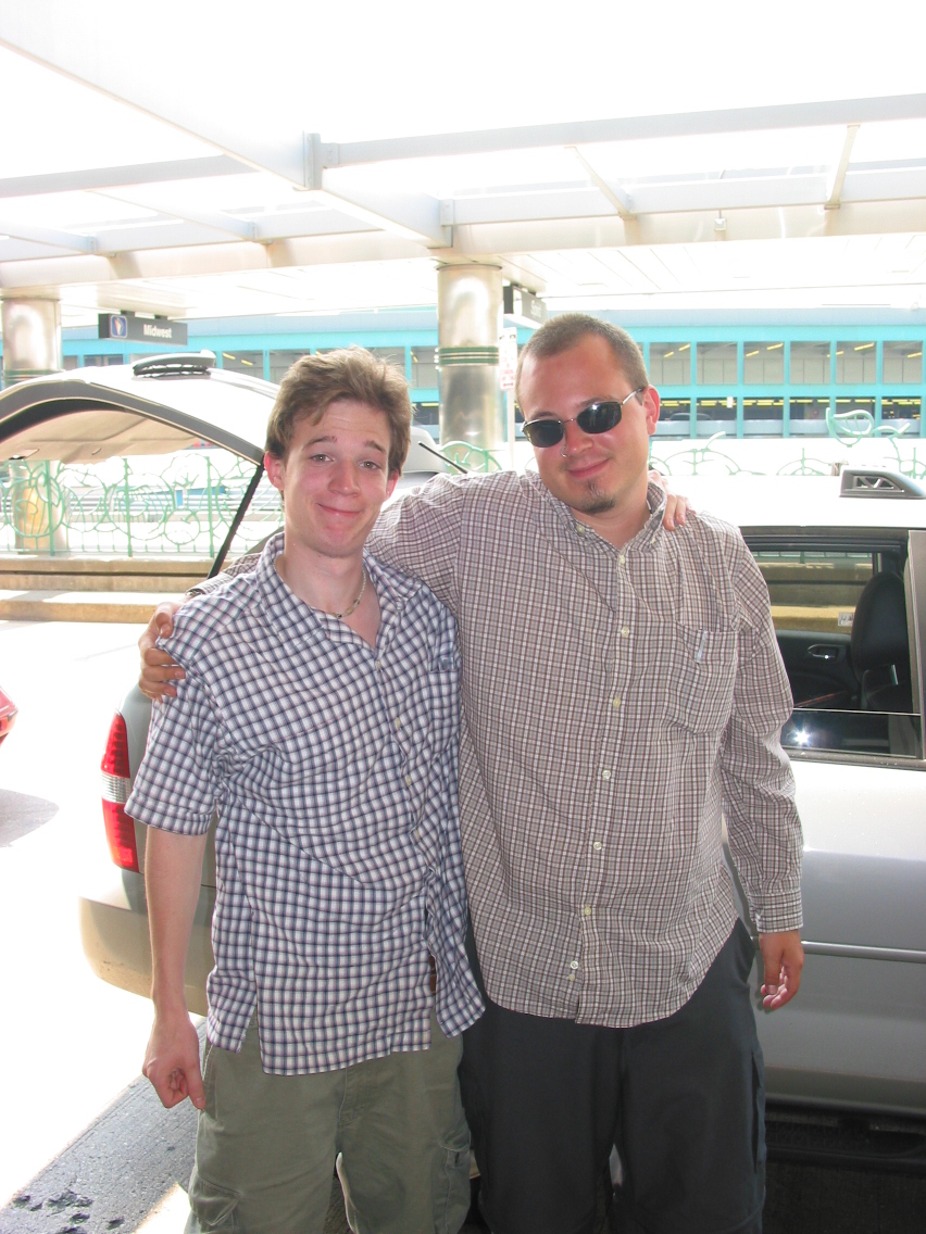 PicId: IMG_1195 Group: Trip, NYC Aug, 2003 Where: New York, NY When: 08-19-2003 Subject(s): Mark William Hershey; Ernest Allen Hershey, IV Comments: As Mark (and Joe) are ready to get on plane back to MI. |