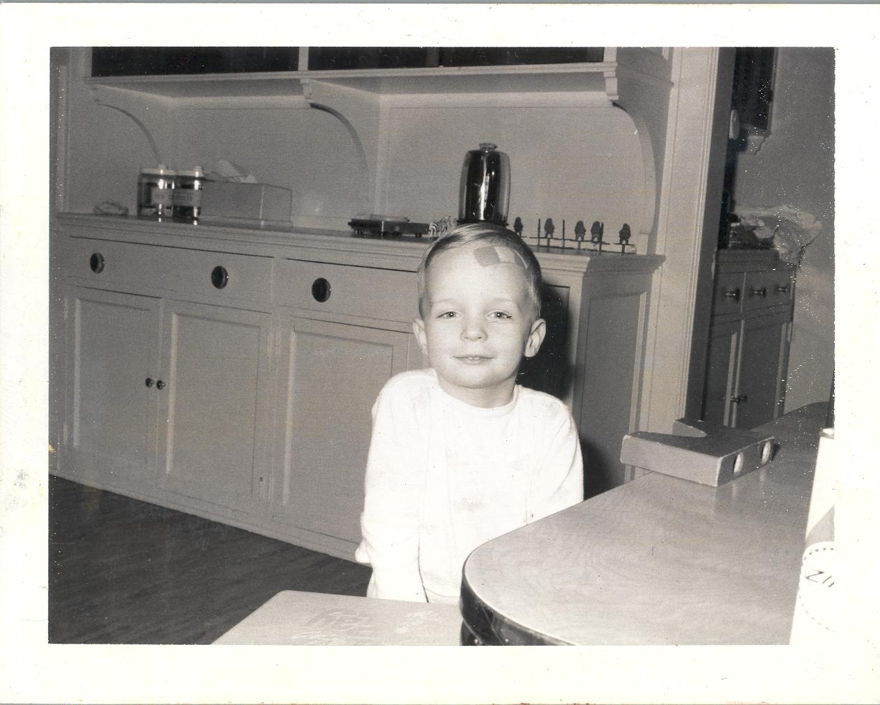 PicId: scan2236 Group: Misc Where: 798 Berkshire, Grosse Pointe, MI When: 07-01-1967 Subject(s): Michael David Hershey Comments: Back of Mike, you can see the small pantry that we could put a gate across and put Joe in when he was getting into too many things. Mom cleared out everything on the shelves and put his toys on the shelves. This pantry was calle "Joe's Bull Pen" , He would crawl up on the shelves and giggle. |