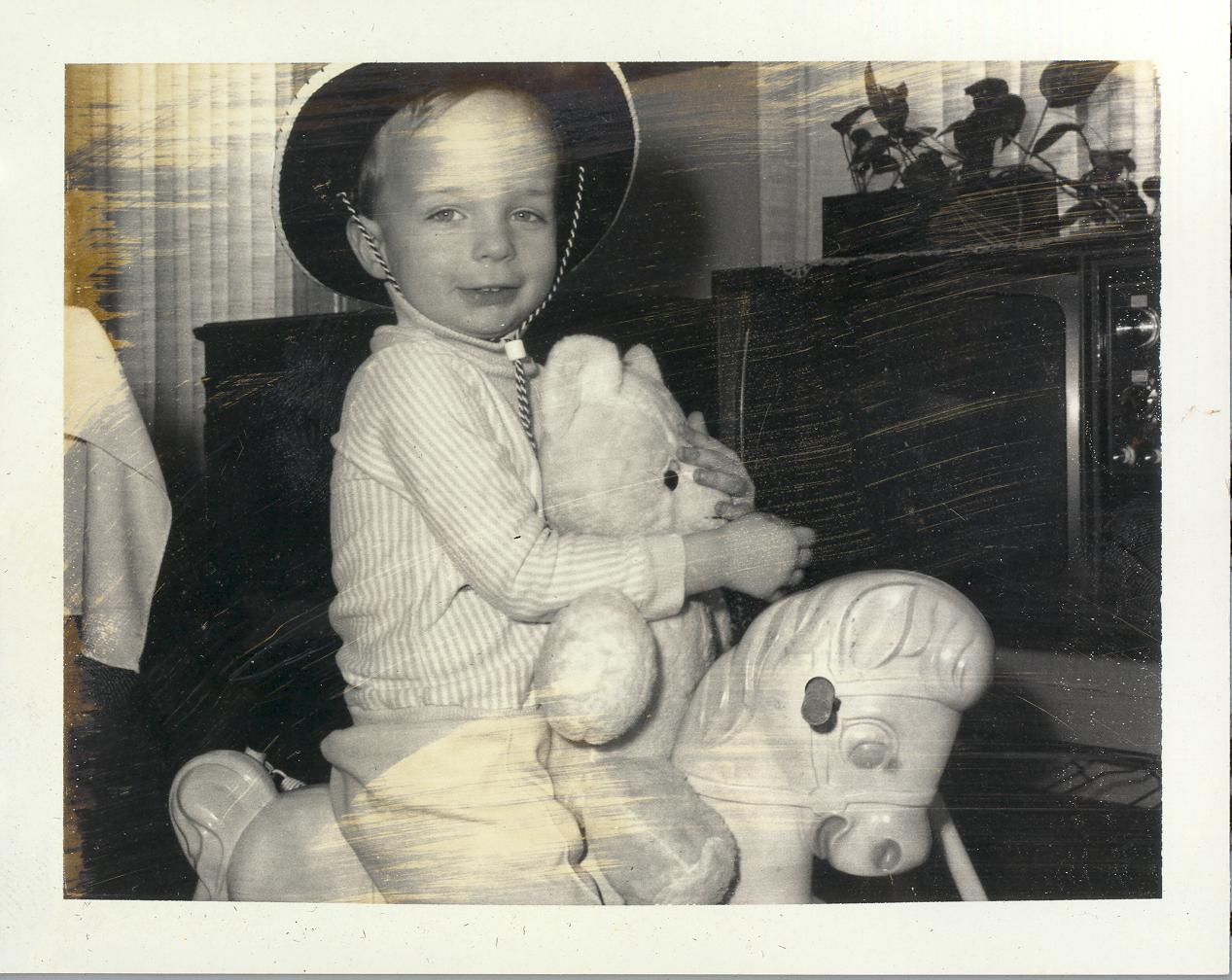 PicId: scan2243 Group: Misc Where: 798 Berkshire, Grosse Pointe, MI When: 07-01-1967 Subject(s): Michael David Hershey; Joseph Raymond Hershey Comments: now, let's see, who's turn is it to ride the horse |