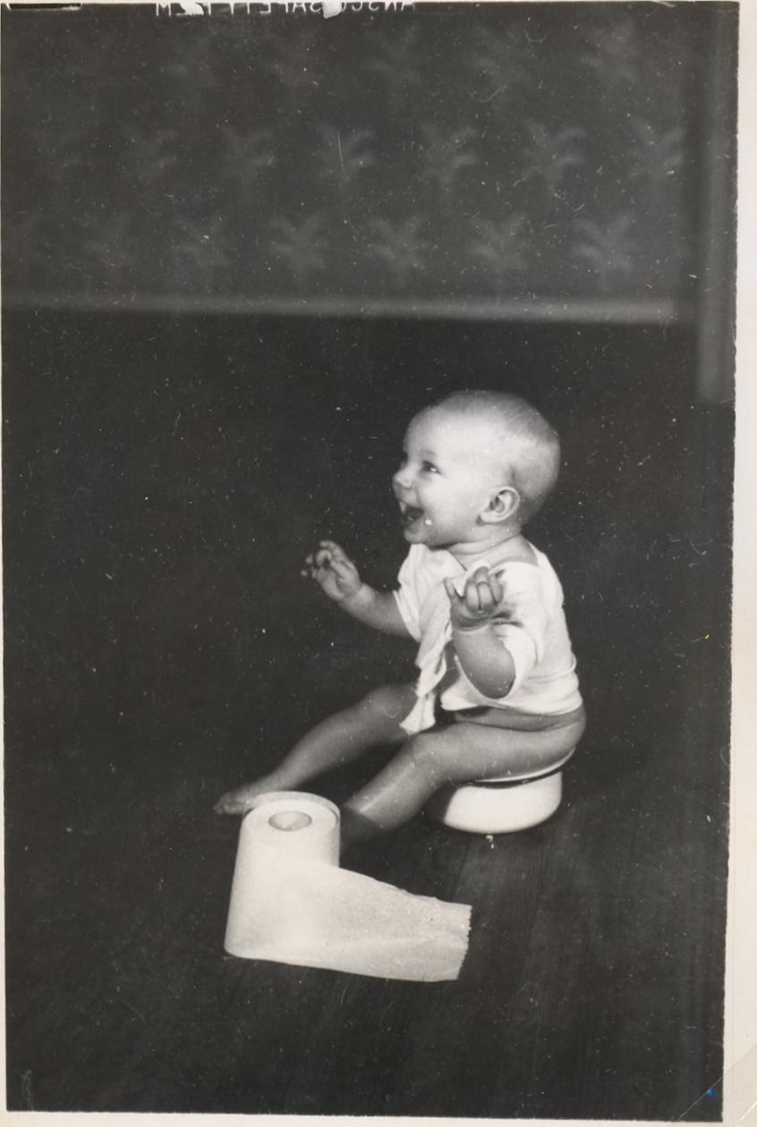 PicId: scan0033d Group: Misc Where: 10 Beals Street, Brookline, MA When: 07-01-1950 Subject(s): Ernest Allen Hershey, III Comments: First time allen piddled in the potty and he thought that was great fun |