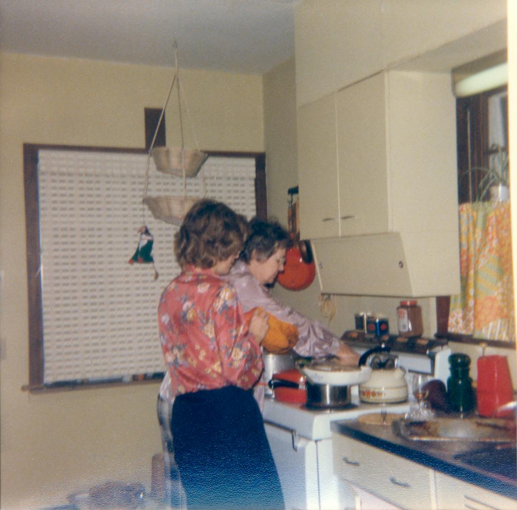 PicId: scan5402 Group: Album, Hersheys 1977-1979 Where: 1109 S. Forest, Ann Arbor, MI When: 11-15-1978 Subject(s): Lucy Hershey; Maya Elmer Comments: Lucy and her mother finishing up the last minute things for Thanksgiving dinner |