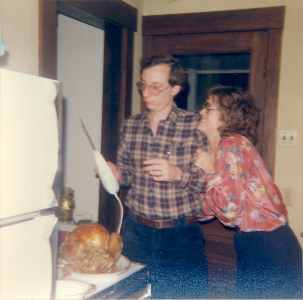 PicId: scan5404 Group: Album, Hersheys 1977-1979 Where: 1109 S. Forest, Ann Arbor, MI When: 11-15-1978 Subject(s): Ernest Allen Hershey, III; Lucy Hershey Comments: Lucy giving Allen encouragement for carving the turkey--We had a great time! Mom didn't have to cook for once. |