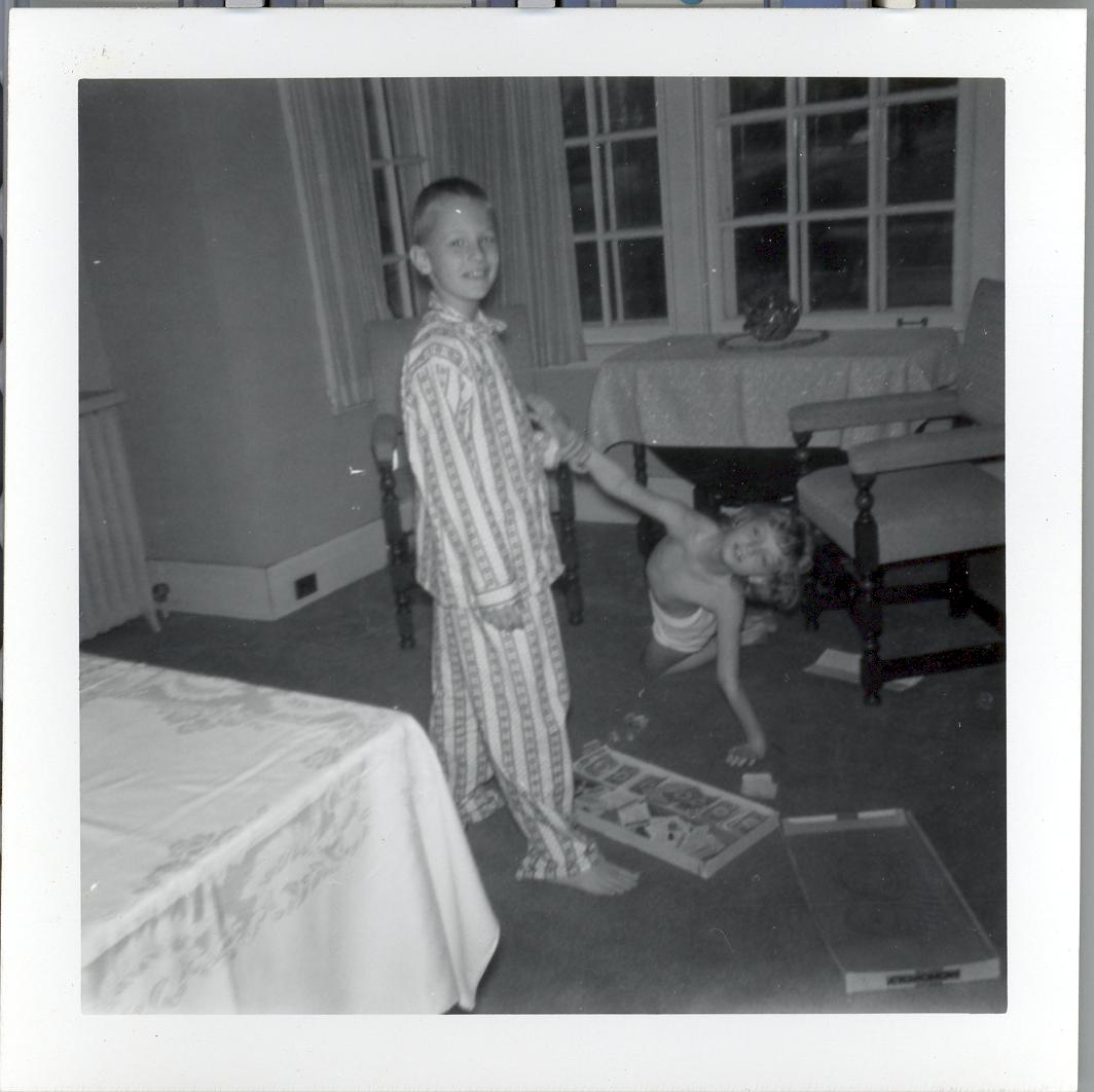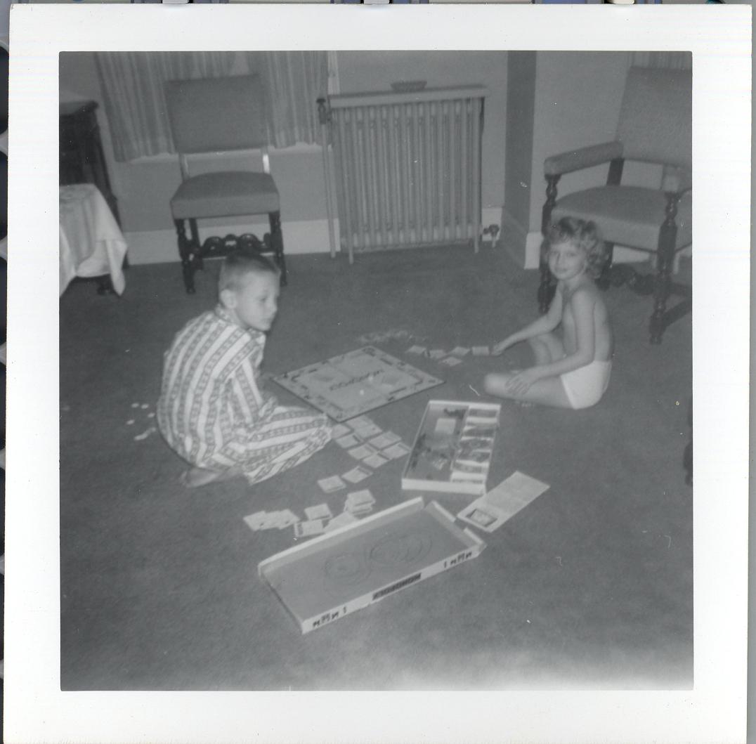PicId: scan1080 Group: Unspecified Where: 798 Berkshire, Grosse Pointe, MI When: 07-01-1960 Subject(s): Stephen Douglas Hershey; Patricia Kay Hershey Comments: Playing monopoly on dining room floor |