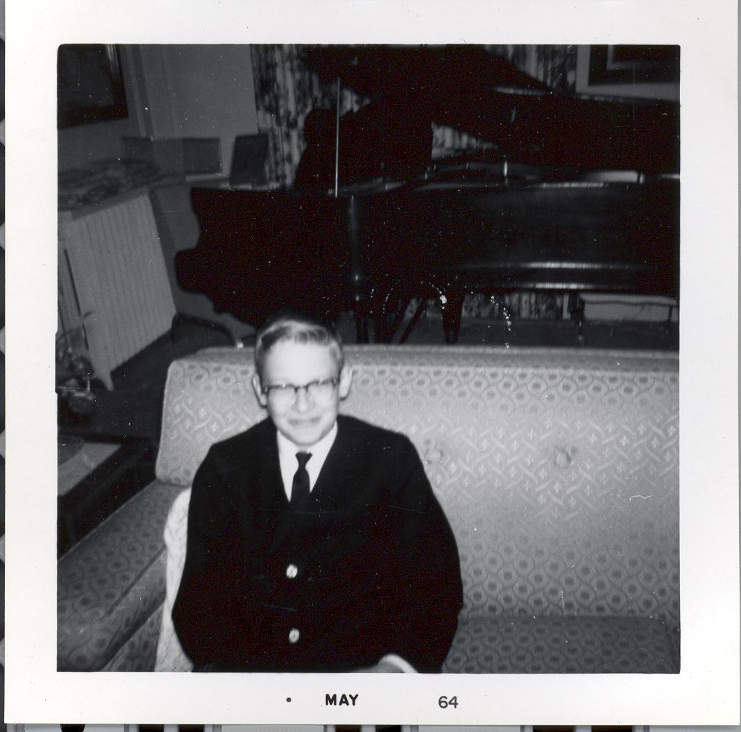 PicId: scan2015 Group: Misc Where: 798 Berkshire, Grosse Pointe, MI When: 07-01-1964 Subject(s): Ernest Allen Hershey, Jr. Comments: Dad listening to recorded music |