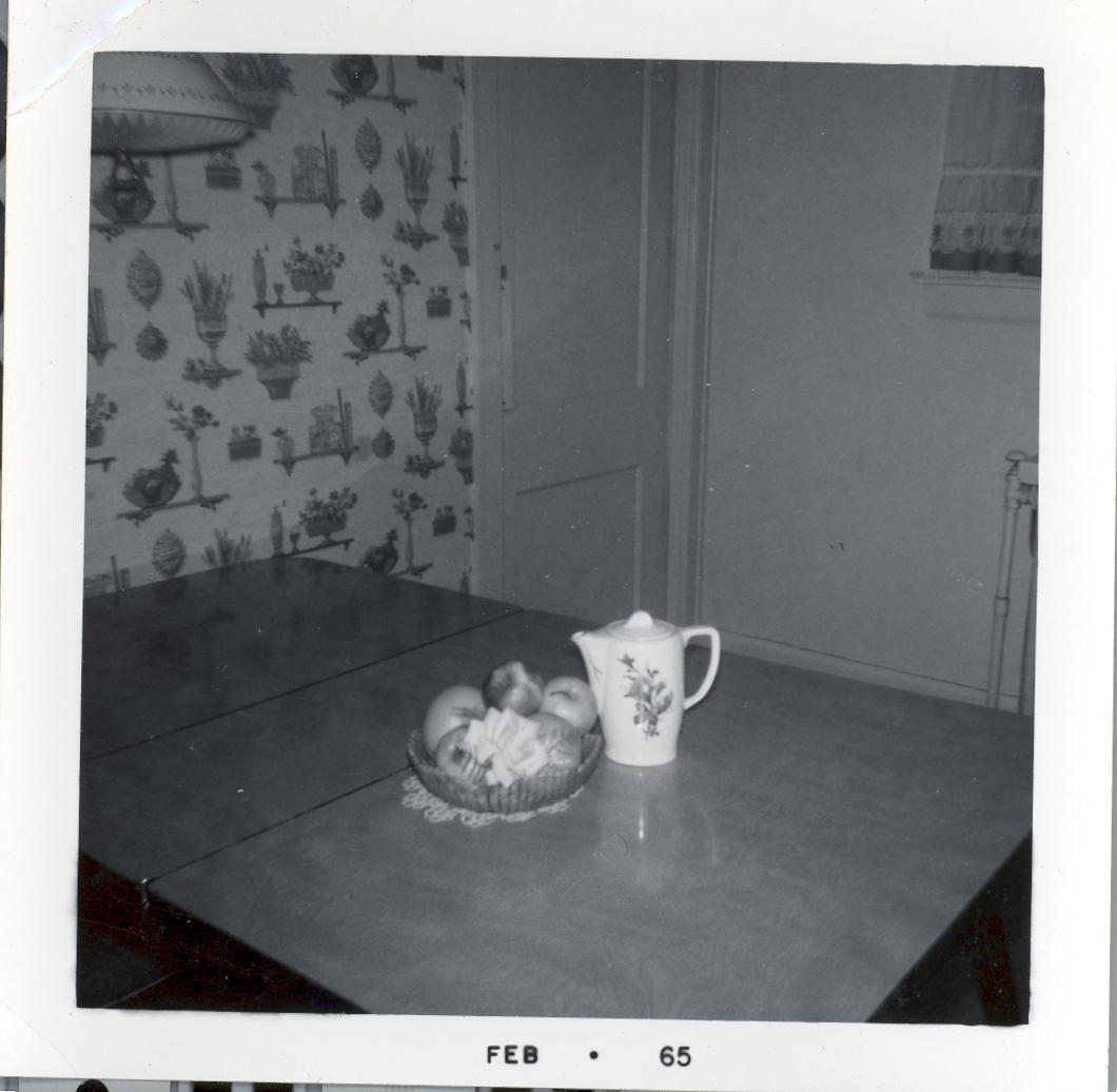 PicId: scan2107 Group: Misc Where: 798 Berkshire, Grosse Pointe, MI When: 07-01-1965 Subject(s): Unspecified Comments: Still Life on kitchen table |