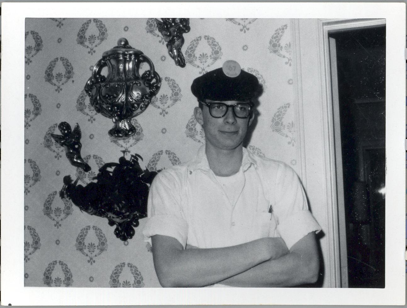 PicId: scan1228 Group: Misc Where: 798 Berkshire, Grosse Pointe, MI When: 07-01-1966 Subject(s): Ernest Allen Hershey, III Comments: Look at new wallpaper that Allen and Mom put up in foyer--quite a job |