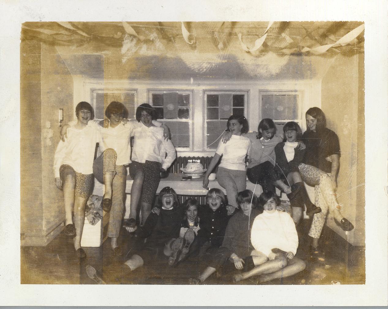 PicId: scan2222 Group: Misc Where: 798 Berkshire, Grosse Pointe, MI When: 04-15-1967 Subject(s): Unspecified Comments: Pat had party for one of her girlfriend's birthday . She and another girl that planned party could not agree on what kind of cake --the other girl says it always must be devel food, and Pat said it has to be angel food so they ended up having both kinds Held party above garage |
