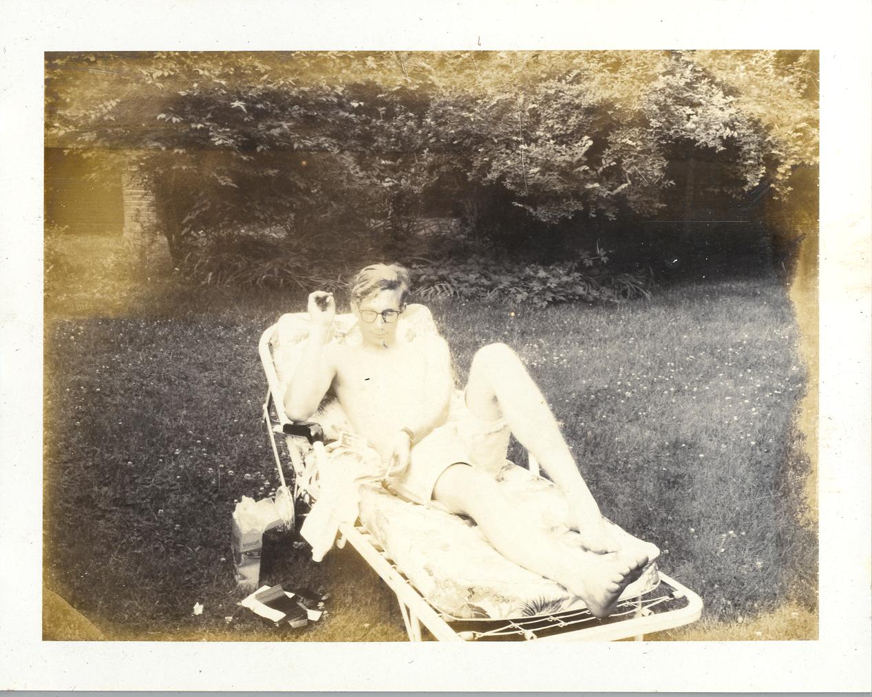 PicId: scan2277 Group: Misc Where: 798 Berkshire, Grosse Pointe, MI When: 07-15-1967 Subject(s): Ernest Allen Hershey, III Comments: Allen living the life of Riley in the back yard |