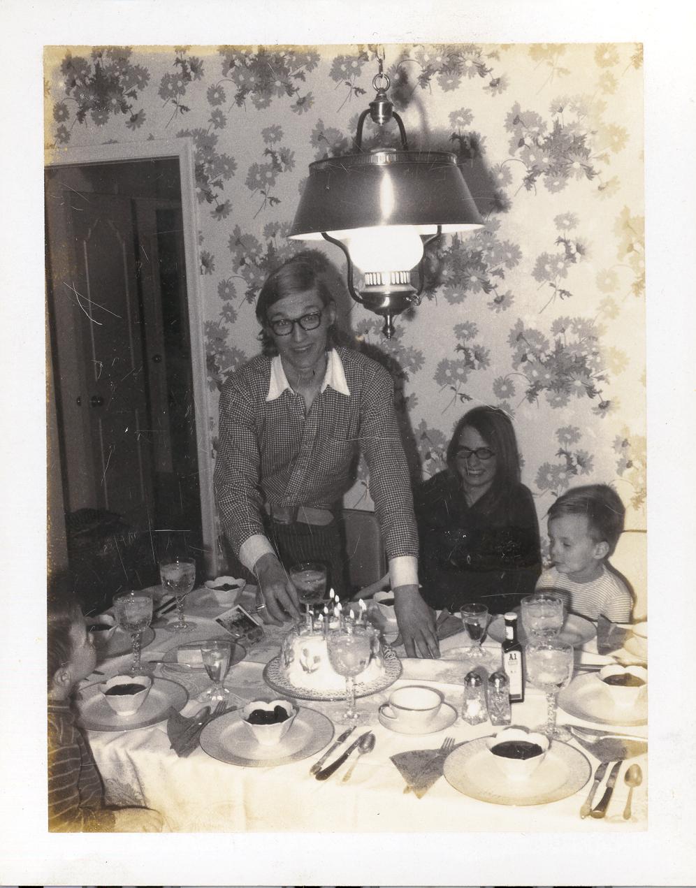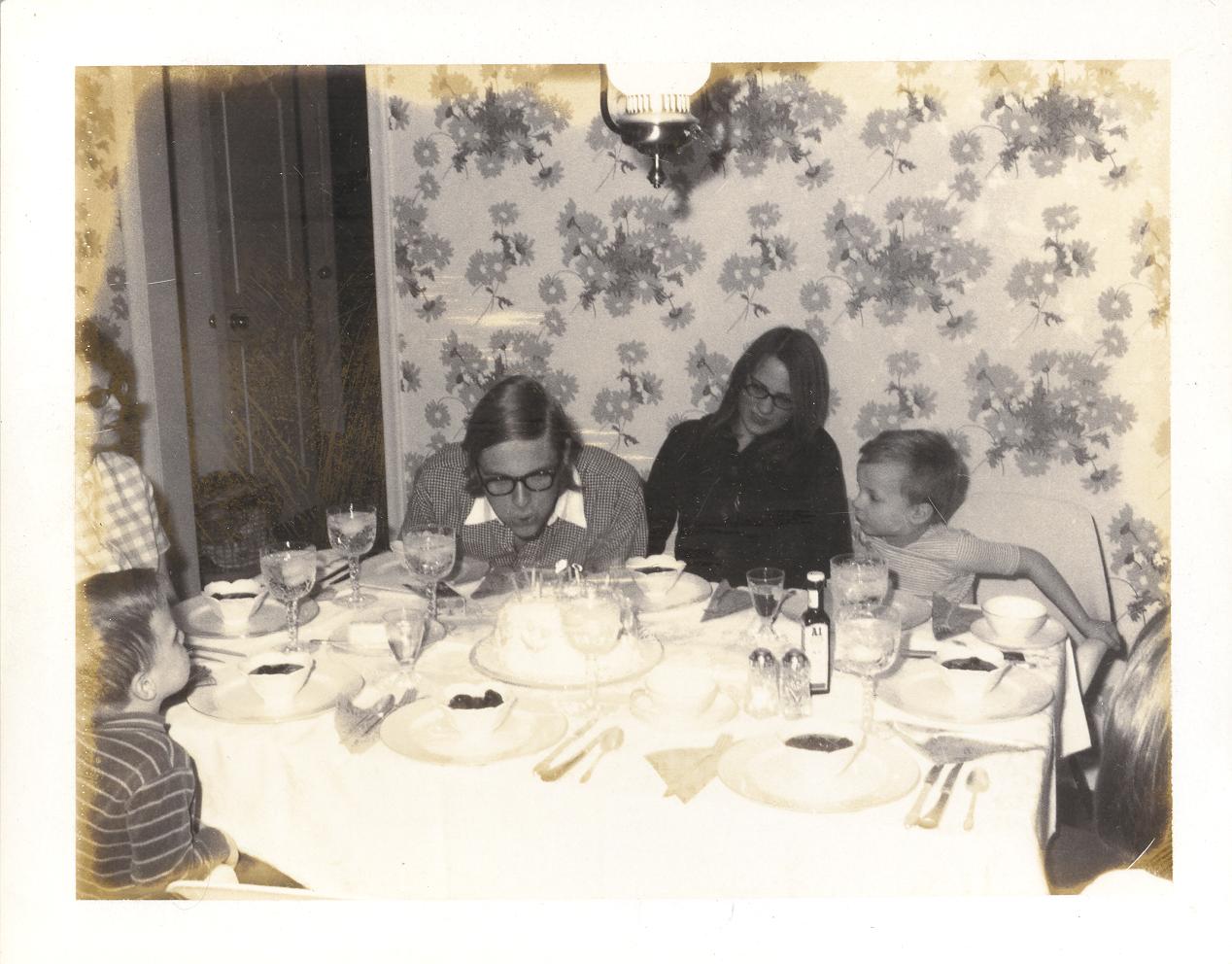 PicId: scan3058 Group: Birthday, Stephen Where: 9 Alger Place, Grosse Pointe, MI When: 04-01-1969 Subject(s): Stephen Douglas Hershey; Michael David Hershey Comments: Steve lighting the candles on the famous angel food cake. Pam is the girlfriend at this time. |