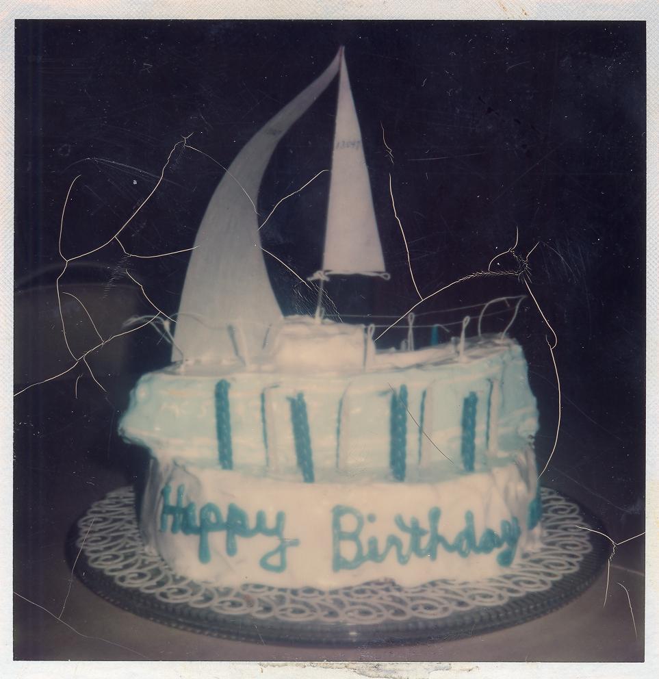 PicId: scan5487a Group: Birthday, Dad Where: 9 Alger Place, Grosse Pointe, MI When: Unspecified Subject(s): Unspecified Comments: Birthday cake mom made to represent Quick I--Dad's sailboat--celebrated on same day as Allen's Lucy's wedding. |