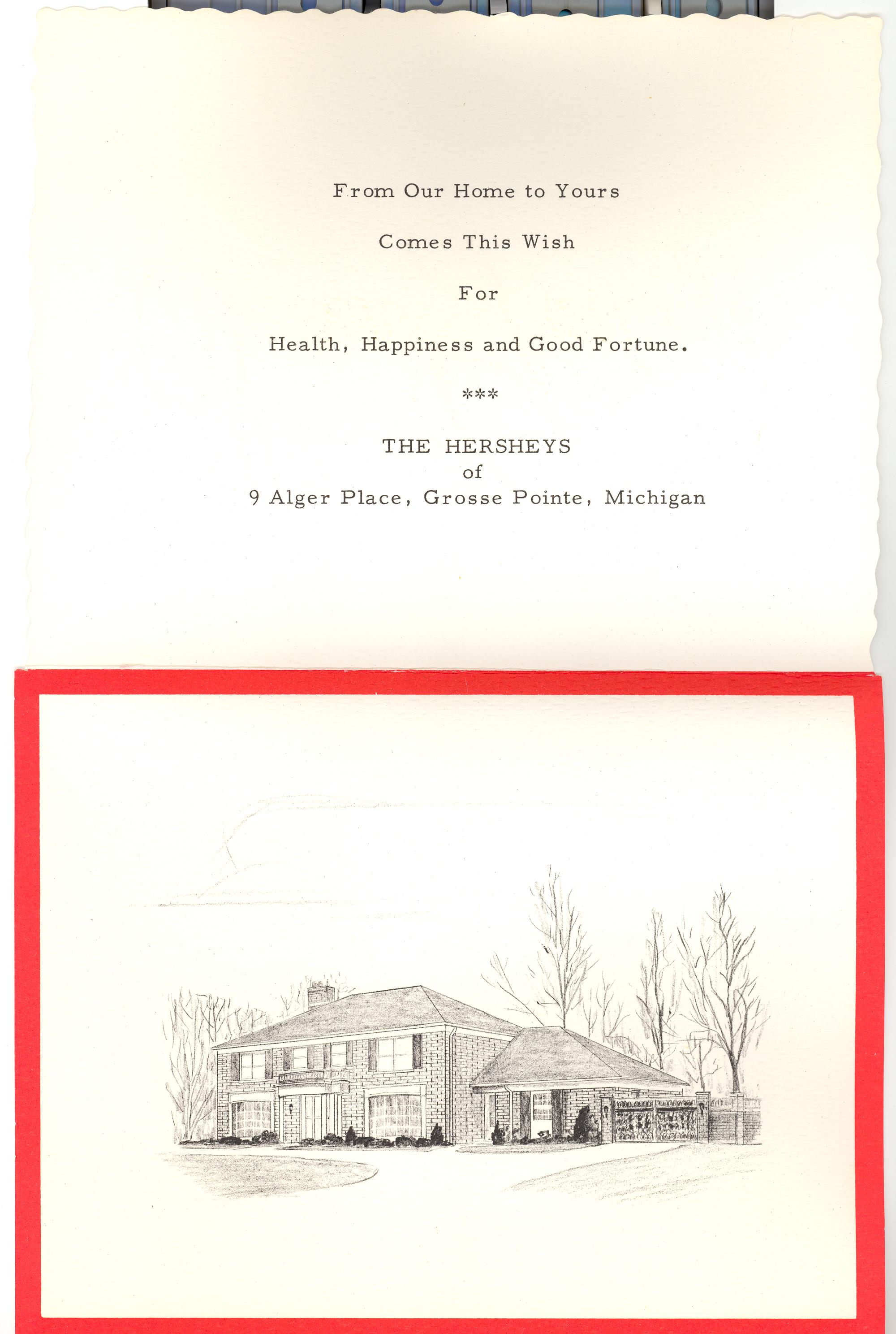 PicId: scan4071 Group: Christmas Where: 9 Alger Place, Grosse Pointe, MI When: 12-25-1969 Subject(s): Unspecified Comments: Inside of our Christmas card we sent the year we moved to 9 Alger Place showing picture of house |
