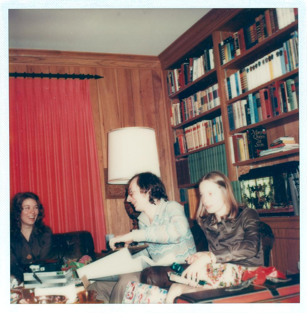 PicId: scan5128 Group: Album, Hersheys 1975-1977 Where: 9 Alger Place, Grosse Pointe, MI When: 12-25-1975 Subject(s): Ernest Allen Hershey, III; Patricia Kay Hershey Comments: Pat and Allen and Gail Mann busy with gifts |