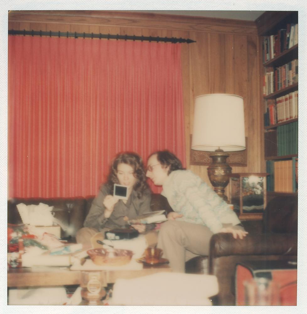 PicId: scan5129 Group: Album, Hersheys 1975-1977 Where: 9 Alger Place, Grosse Pointe, MI When: 12-25-1975 Subject(s): Ernest Allen Hershey, III Comments: Allen and friend , Gail Mann,looking at pictures |