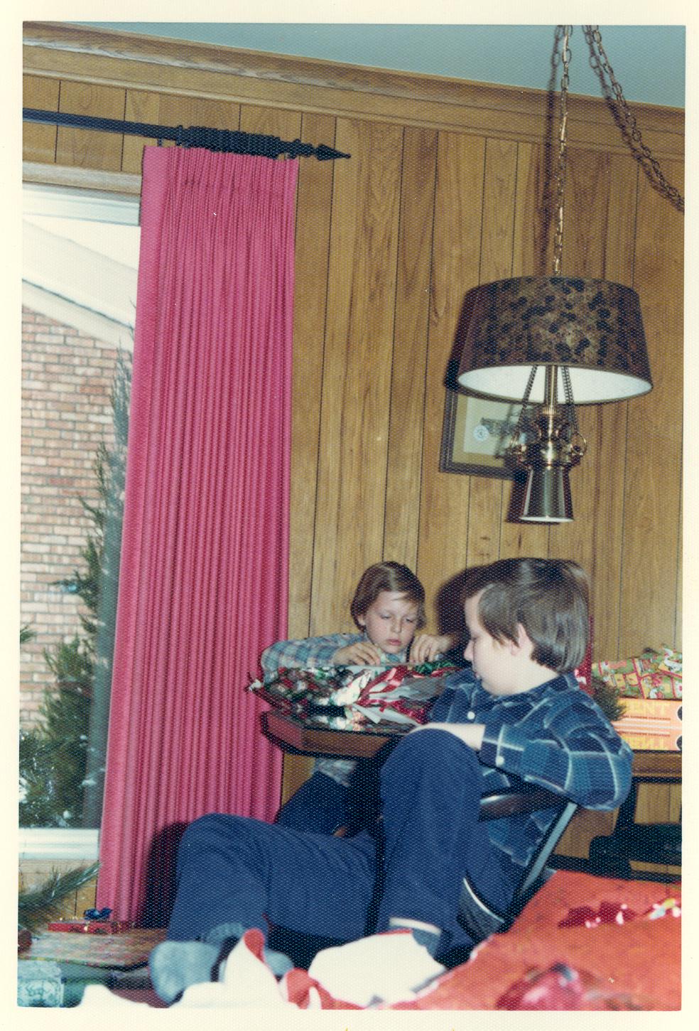 PicId: scan5133 Group: Album, Hersheys 1975-1977 Where: 9 Alger Place, Grosse Pointe, MI When: 12-25-1975 Subject(s): Michael David Hershey; Joseph Raymond Hershey Comments: Mike and Joe being very serious |