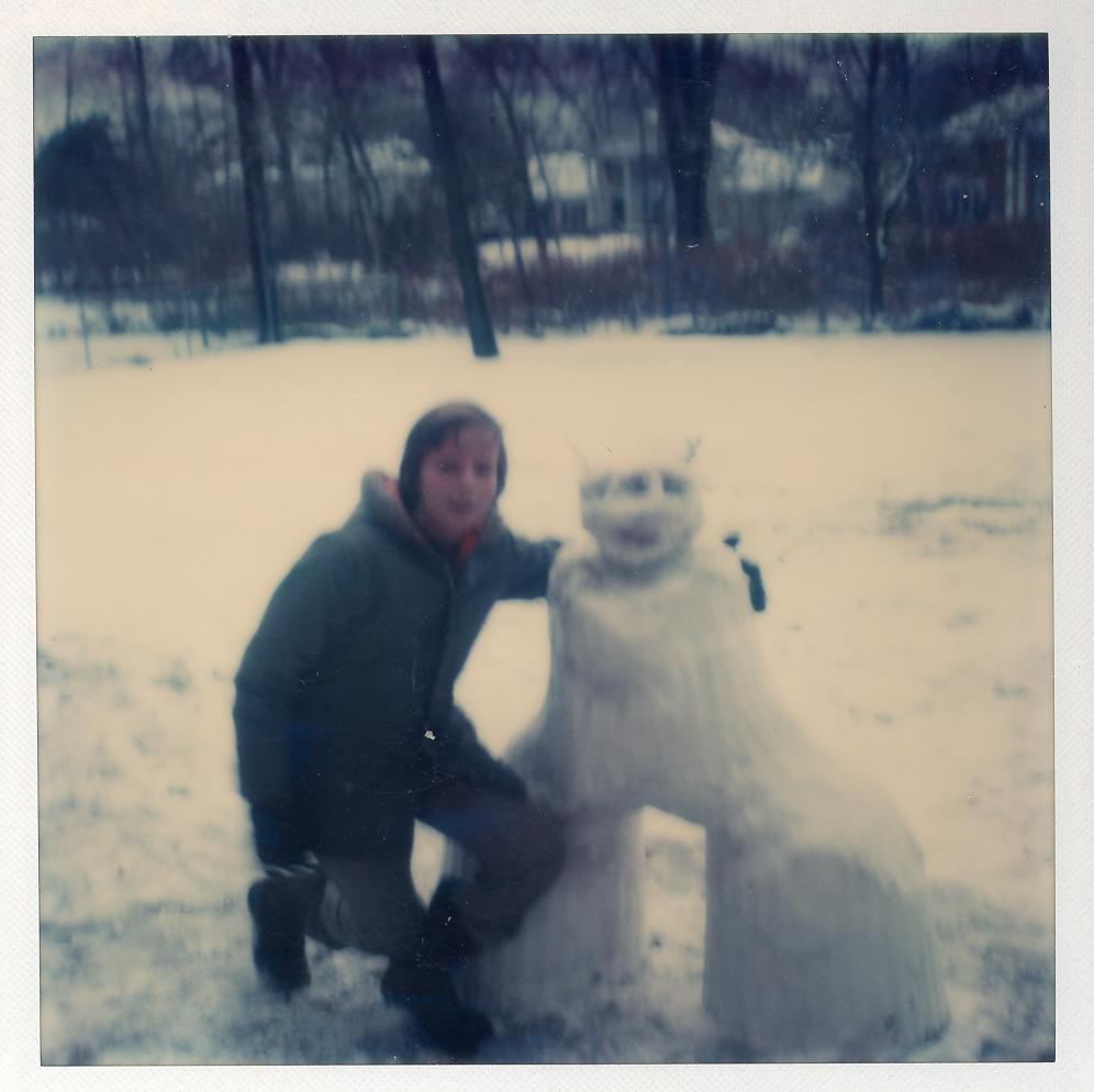 PicId: scan5141a Group: Album, Hersheys 1975-1977 Where: 9 Alger Place, Grosse Pointe, MI When: 02-15-1976 Subject(s): Michael David Hershey Comments: Mike and his snowman in back yard |