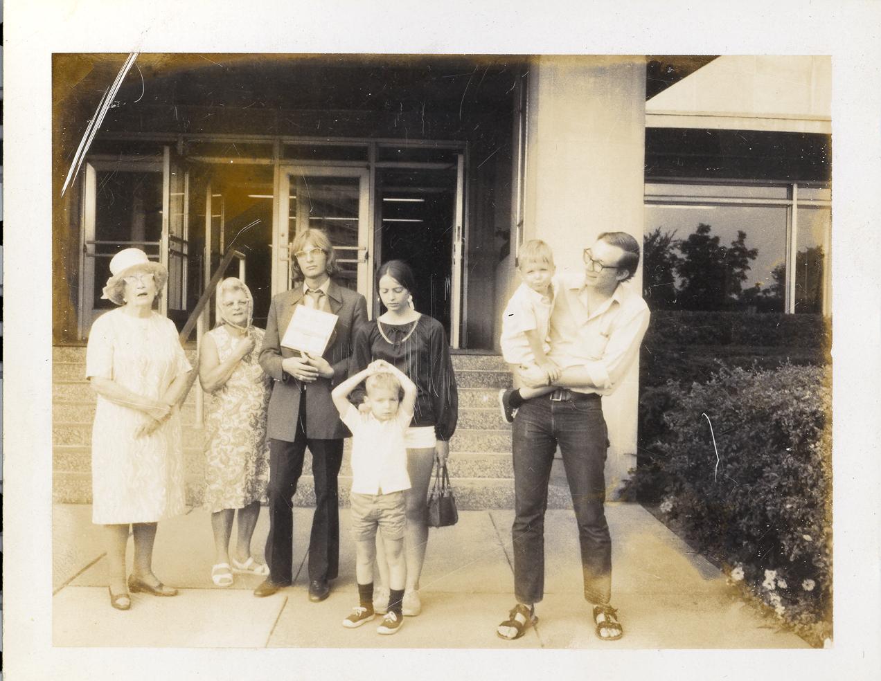 PicId: scan3006 Group: Misc Where: Ann Arbor, MI When: 07-01-1969 Subject(s): Ernest Allen Hershey, III; Stephen Douglas Hershey; Patricia Kay Hershey; Michael David Hershey; Joseph Raymond Hershey; Pauline Clingerman(Grandma Polly; Grand Ma Hershey Comments: Visited Allen on way to Churubusco to take Grandmothers home |