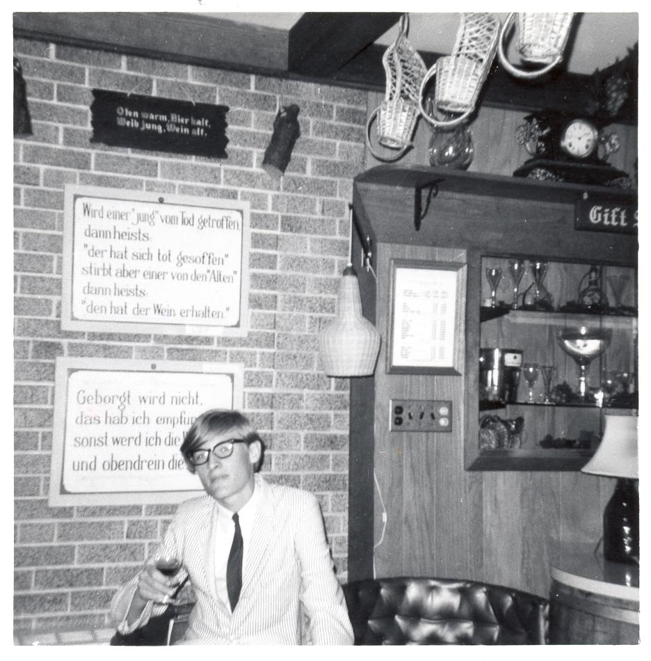 PicId: scan5512 Group: Trip, Atlantic City 1967 Where: Atlantic City, NJ When: 06-15-1967 Subject(s): Stephen Douglas Hershey Comments: Steve living it up at the Gross Highland Winery |