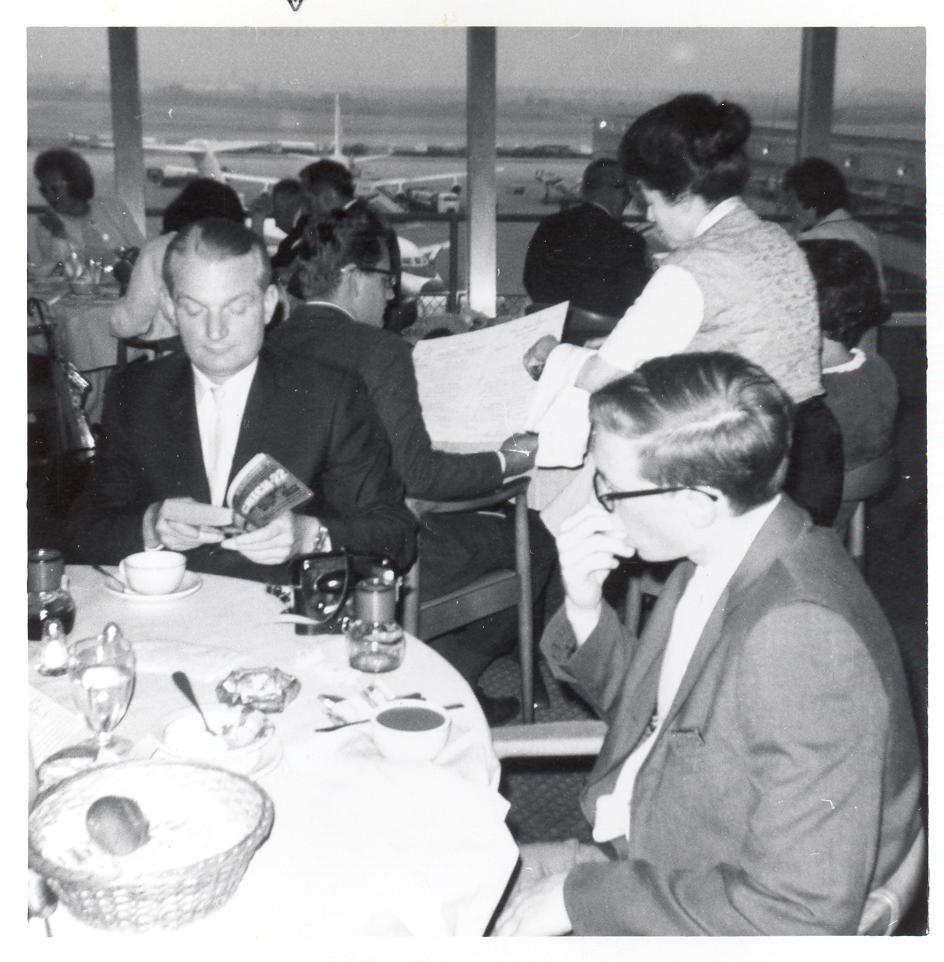 PicId: scan5513 Group: Trip, Atlantic City 1967 Where: Atlantic City, NJ When: 06-15-1967 Subject(s): Ernest Allen Hershey, Jr.; Ernest Allen Hershey, III Comments: Having dinner at the Philadelphia Airport while waiting for plane to take us back to Detroit |