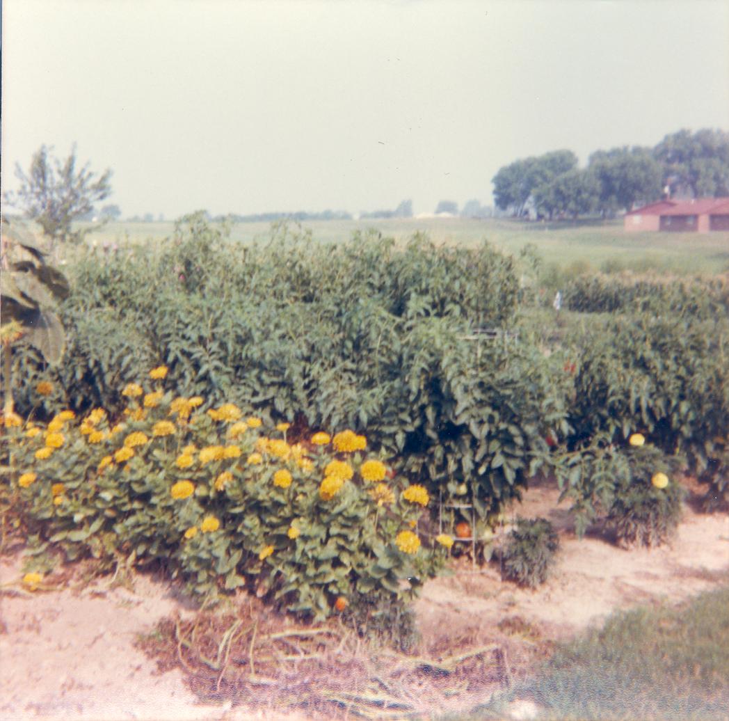 PicId: scan5366 Group: Album, Hersheys 1977-1979 Where: Churubusco, IN When: 08-13-1978 Subject(s): Unspecified Comments: One can see Sherm Gaff's high sweet corn ready to pick and rows of flowers |