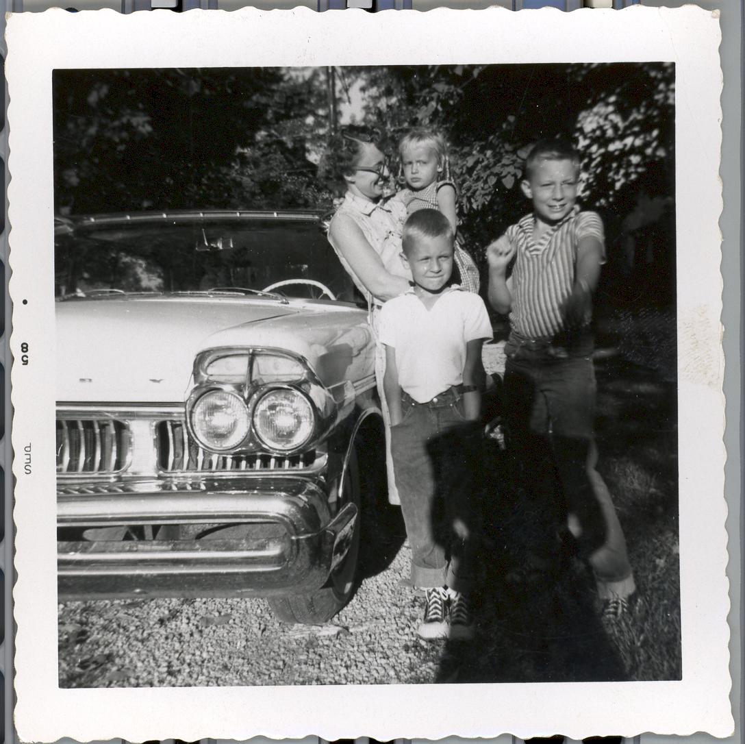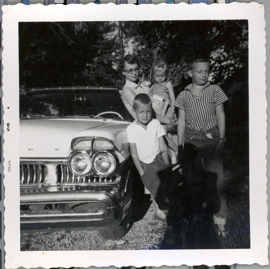 PicId: scan0171 Group: Misc Where: Circle, Churubusco, IN When: 07-01-1958 Subject(s): Kathleen Kay Hershey; Ernest Allen Hershey, III; Stephen Douglas Hershey; Patricia Kay Hershey Comments: Mom & kids getting ready to move to Detroit from Busco |